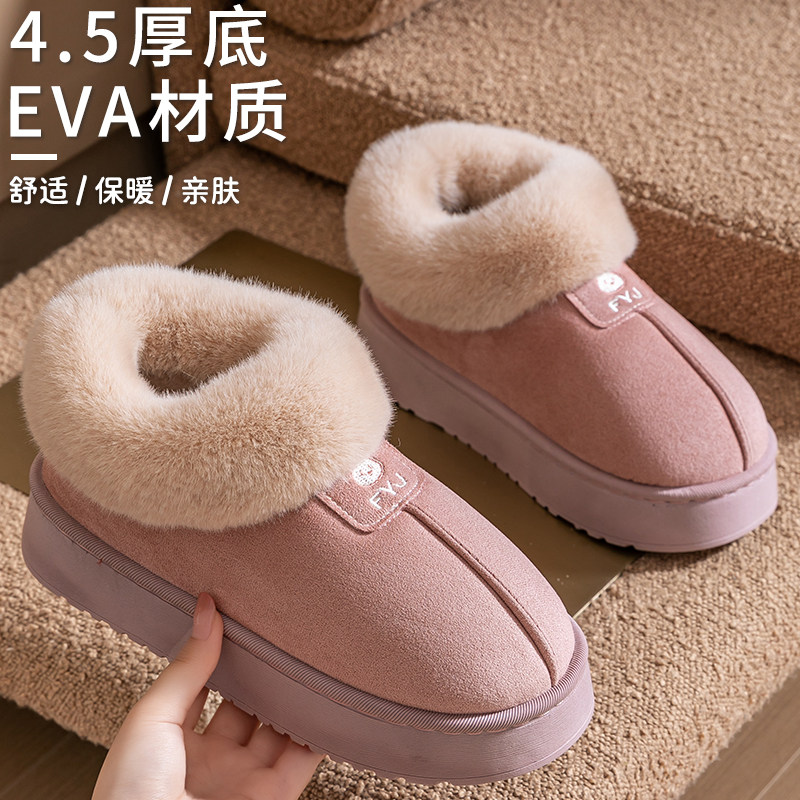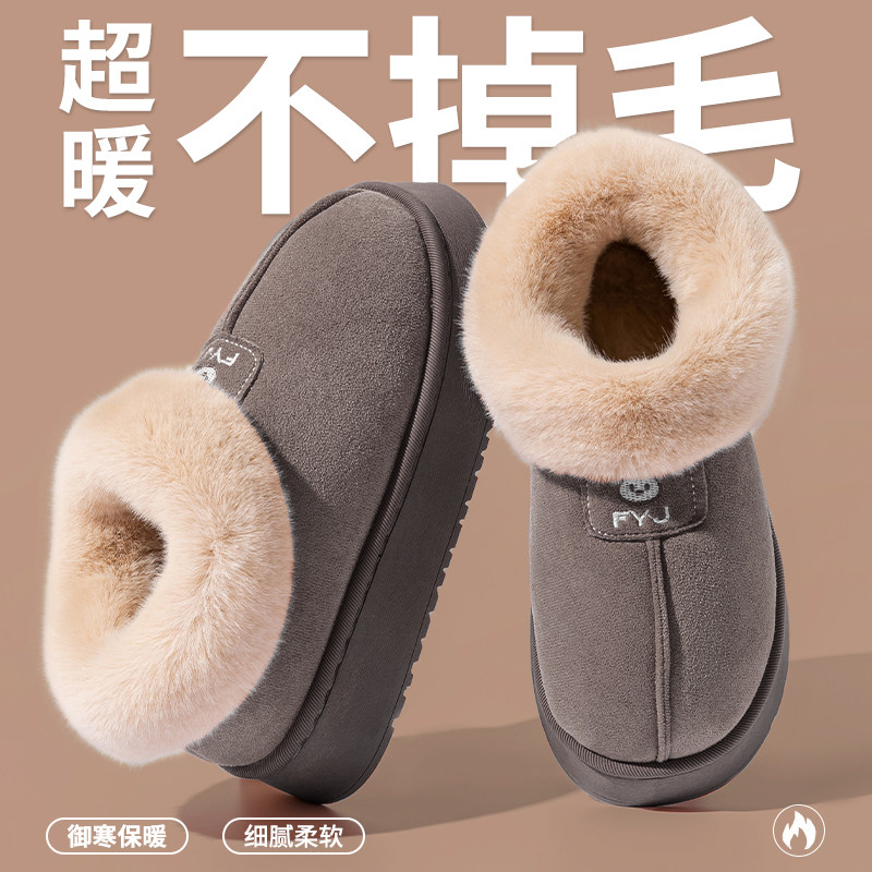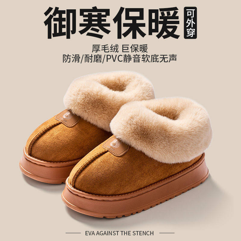 外穿雪地鞋女士室内居家防滑软底加绒保暖包跟棉拖鞋多规格