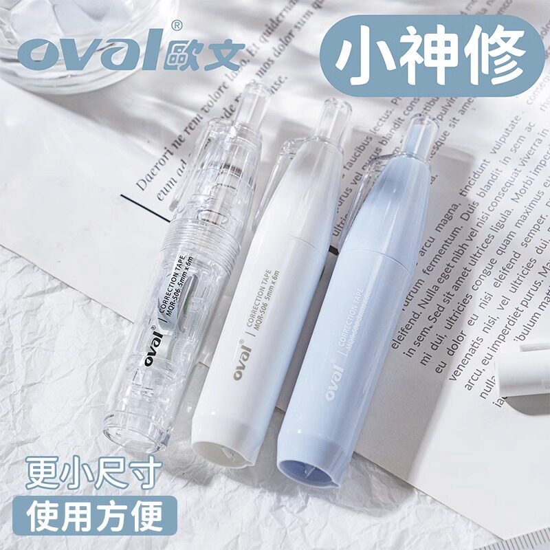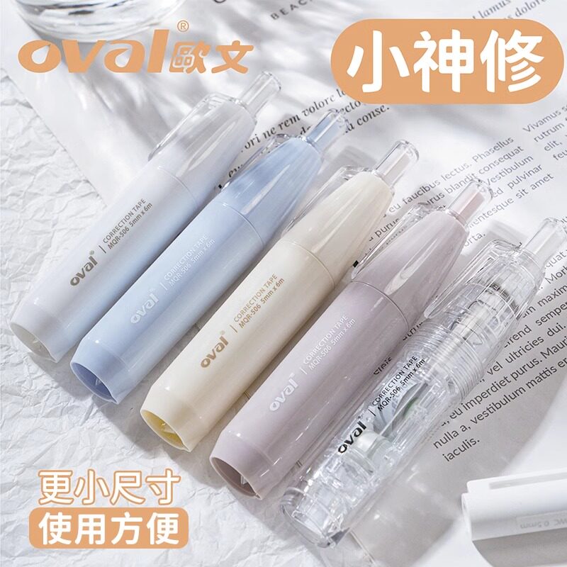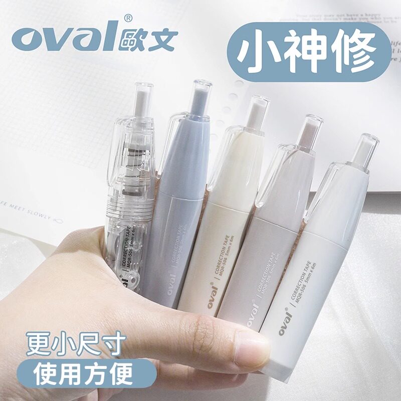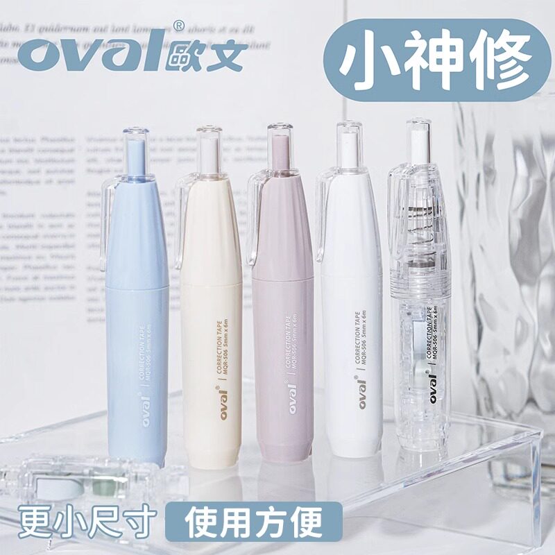 台湾oval欧文修正带小神修系列按动式学生用大容量涂改带简约清新纯色高颜值可换替芯笔式小巧便携改正带