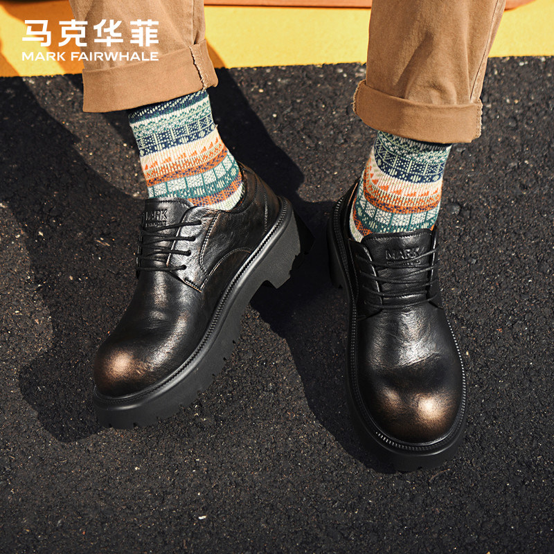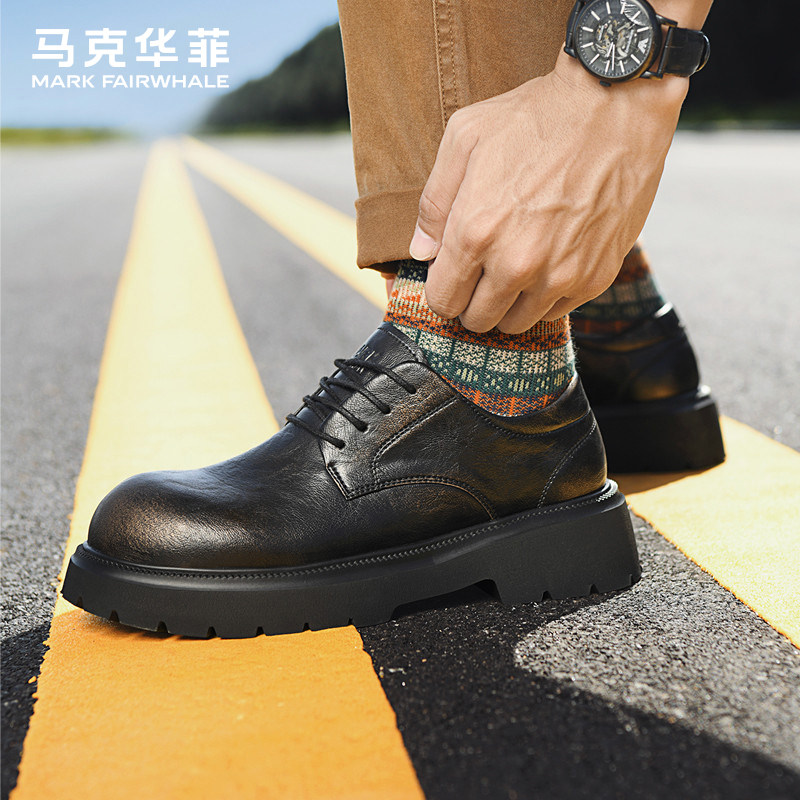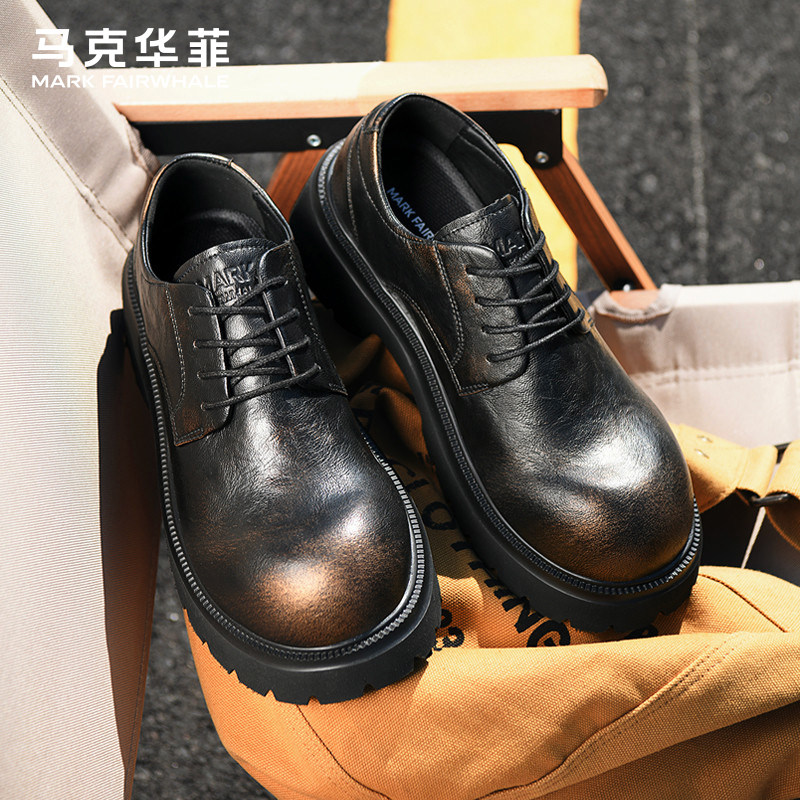 马克华菲男鞋2026男士休闲皮鞋大头皮鞋男款厚底德比鞋高级感真皮