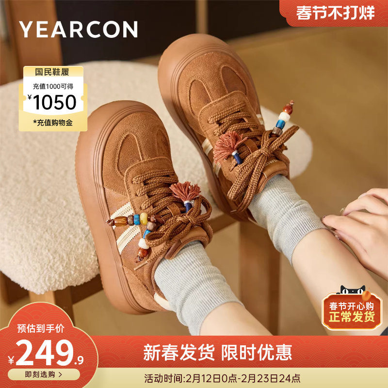 意尔康女鞋2025冬季厚底板鞋加绒保暖二棉鞋德训鞋美拉德大头鞋