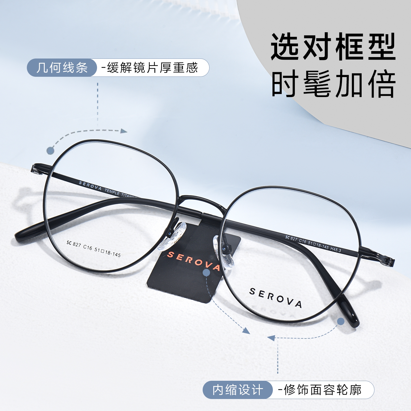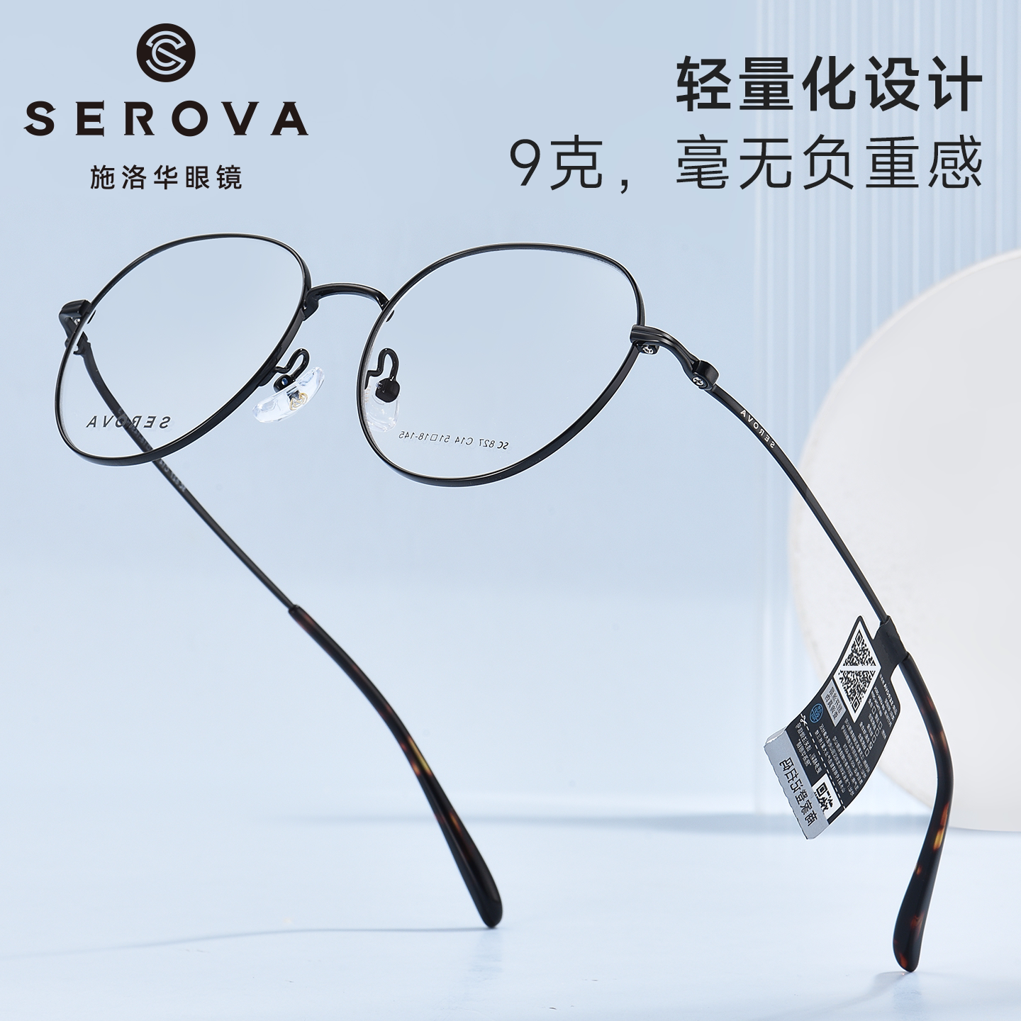 施洛华近视眼镜框银色钛架女超轻简约方圆框可配近视镜片男SC827