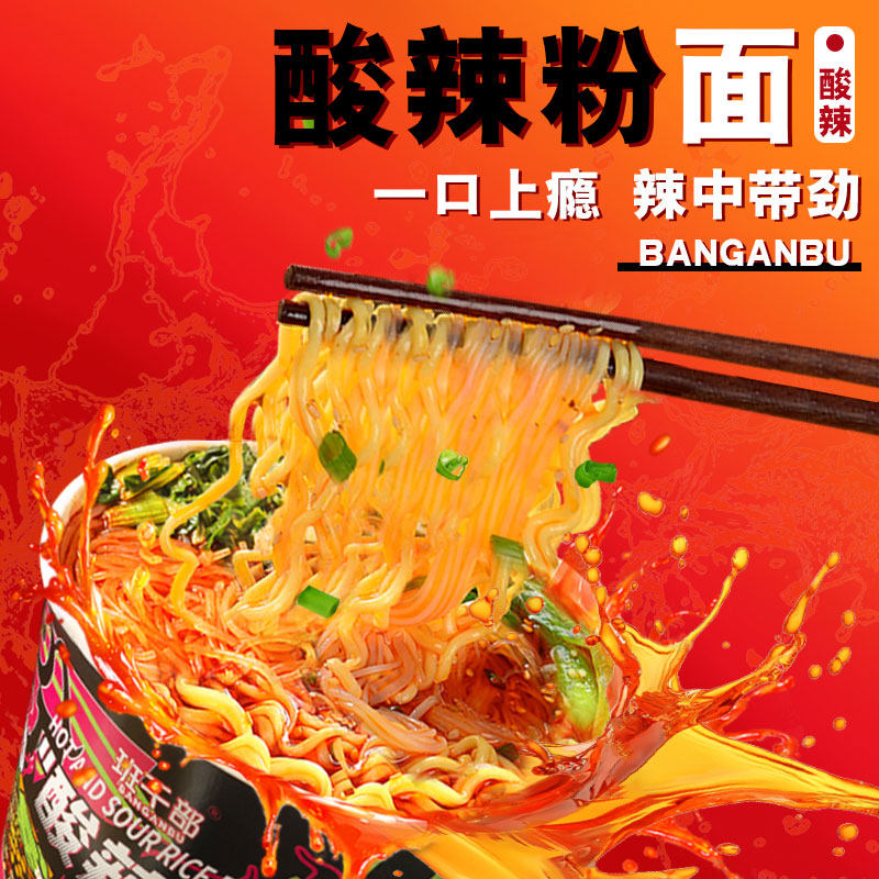 班干部重庆酸辣粉面混合泡面桶装免煮红薯粉速食品方便面整箱批发