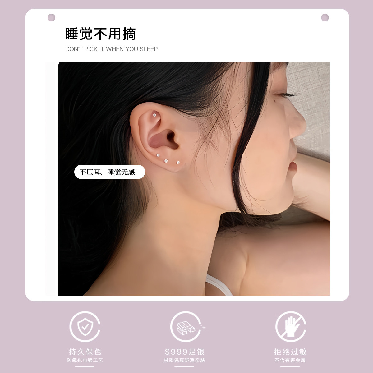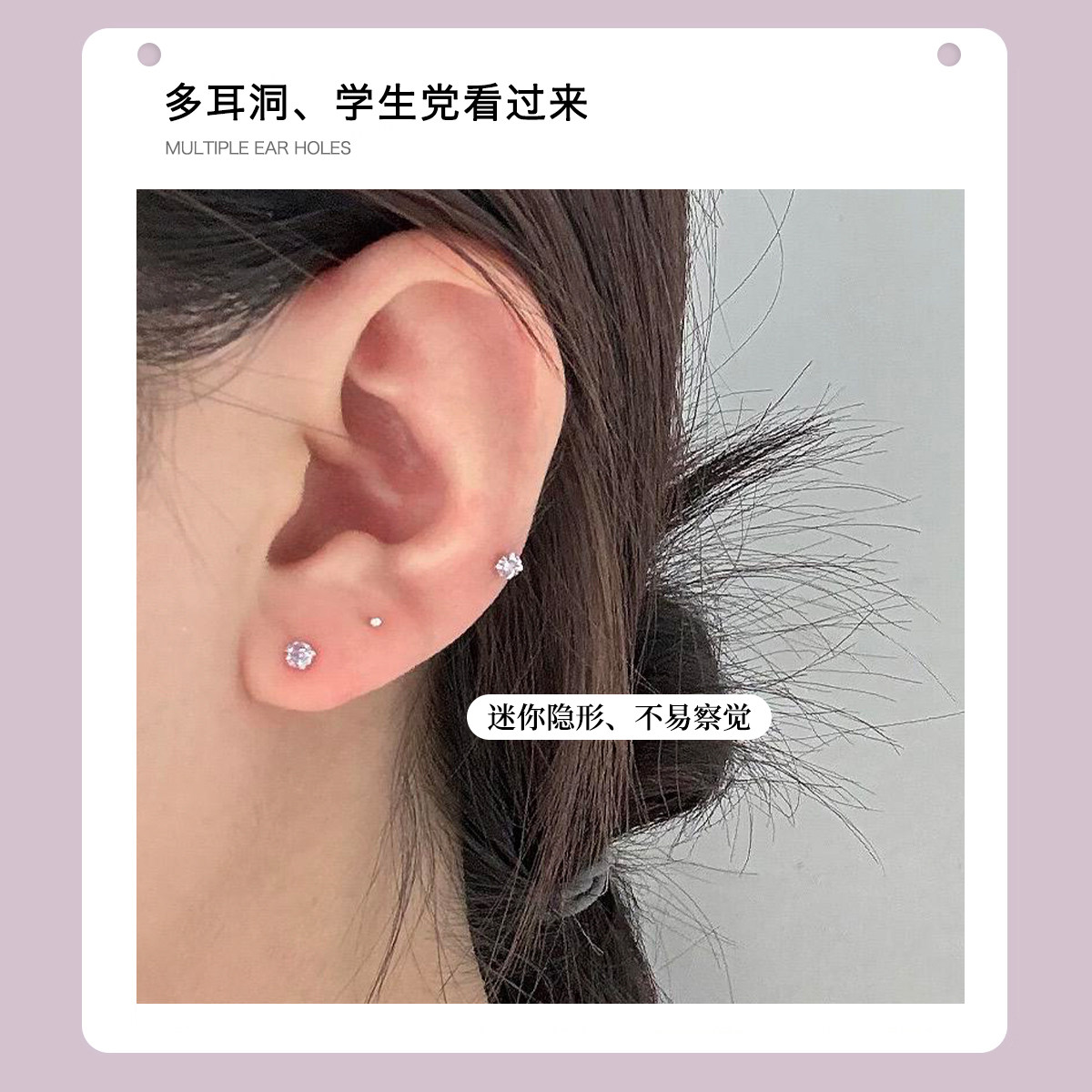 999纯银耳钉女养耳洞耳骨钉小众高级感锆石耳蜗钉水钻耳环银耳饰
