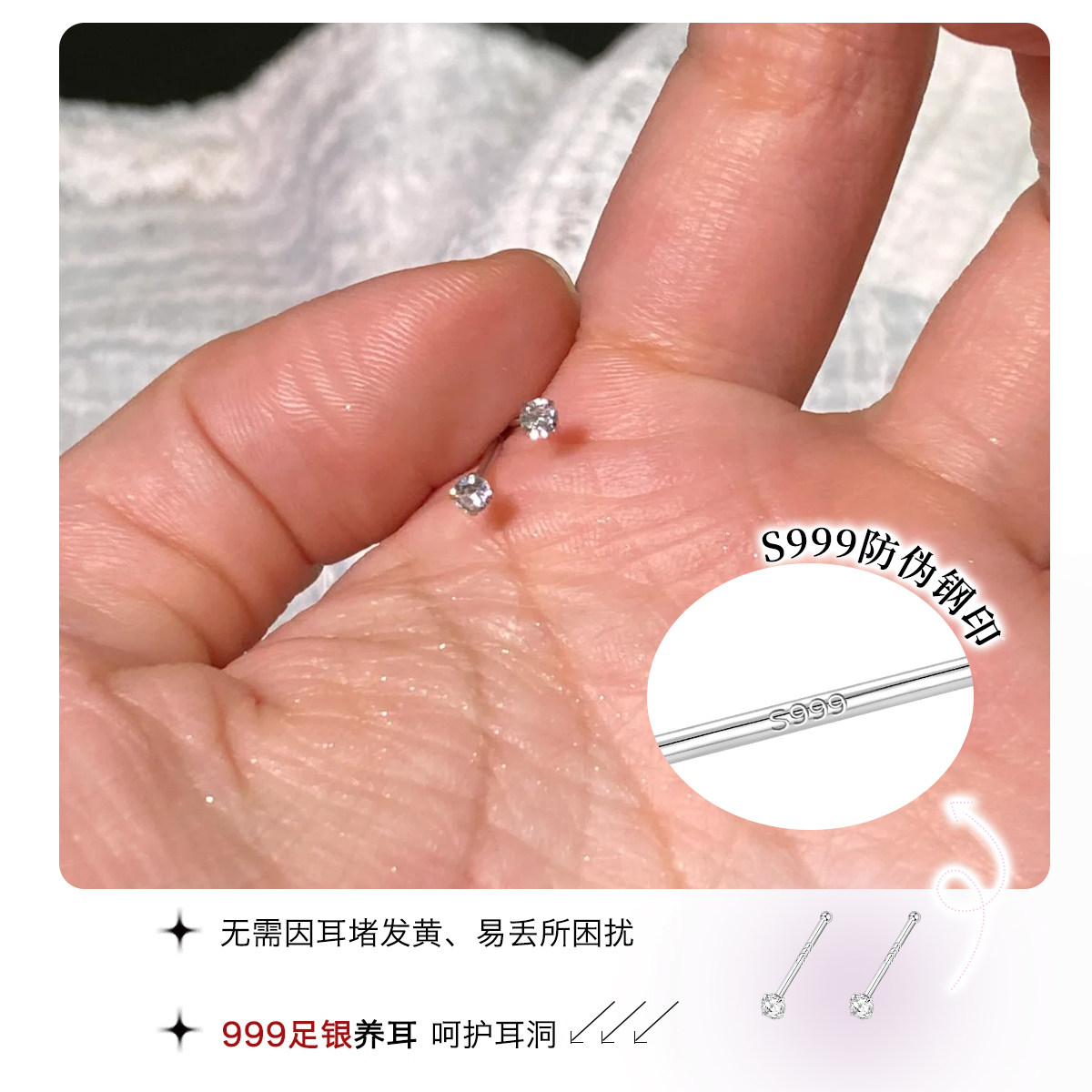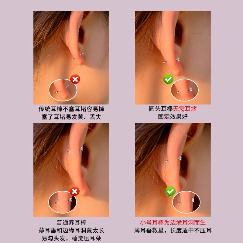 S999纯银耳钉迷你隐形养耳洞耳环防堵针耳棒2026新款爆款银耳饰女
