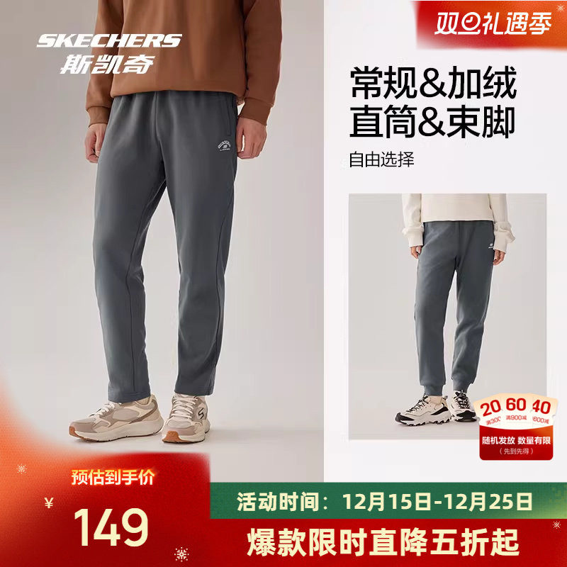 斯凯奇男女同款针织运动裤2025秋冬弹力柔软舒适健身裤黑色长裤子
