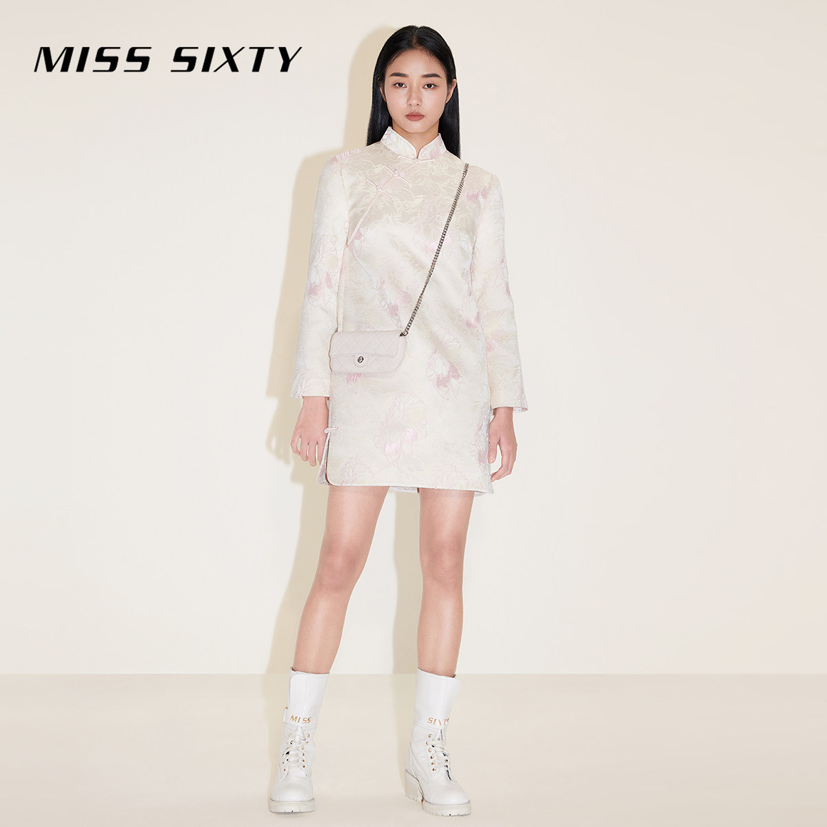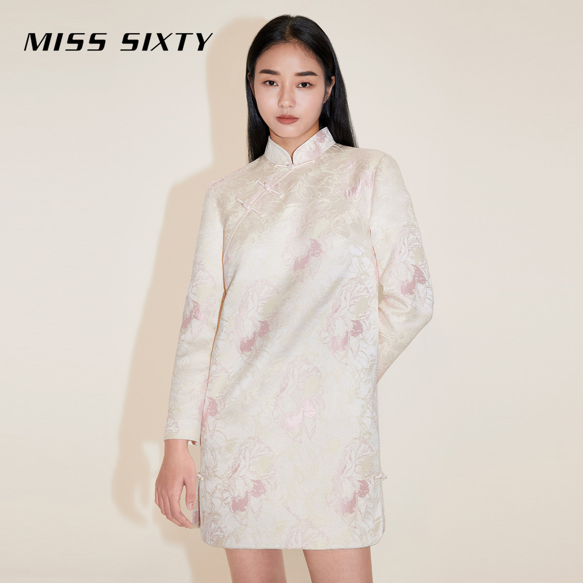 【新年穿搭】Miss Sixty连身连衣裙女长袖旗袍气质立领盘扣国风