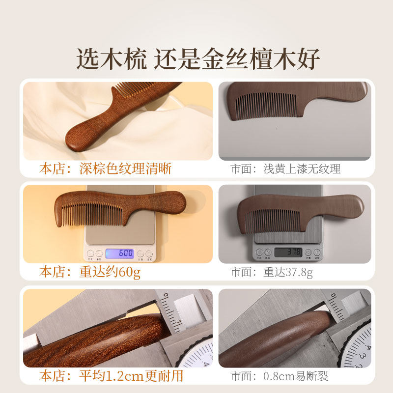 金丝檀木梳子家用按摩头皮经络静电男士女士专用长发梳头不打结防