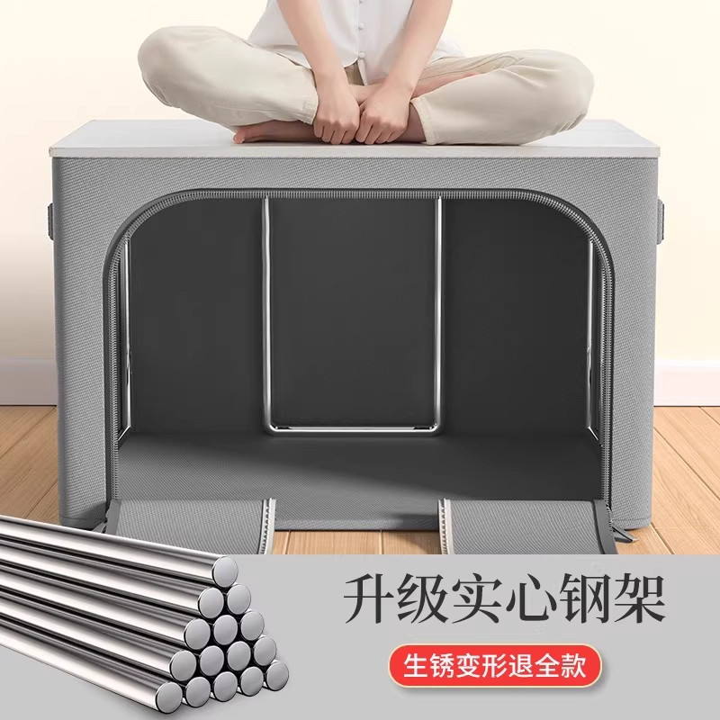 三层加厚帆布带盖拉链收纳箱防潮大容量衣服被子收纳袋可折叠整理