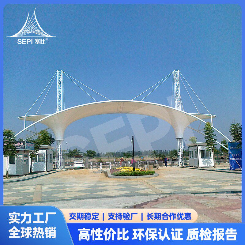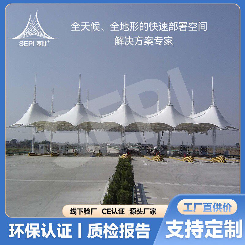 高速公路收费站膜结构遮阳篷小区门口车库出入口景观棚张拉膜雨棚