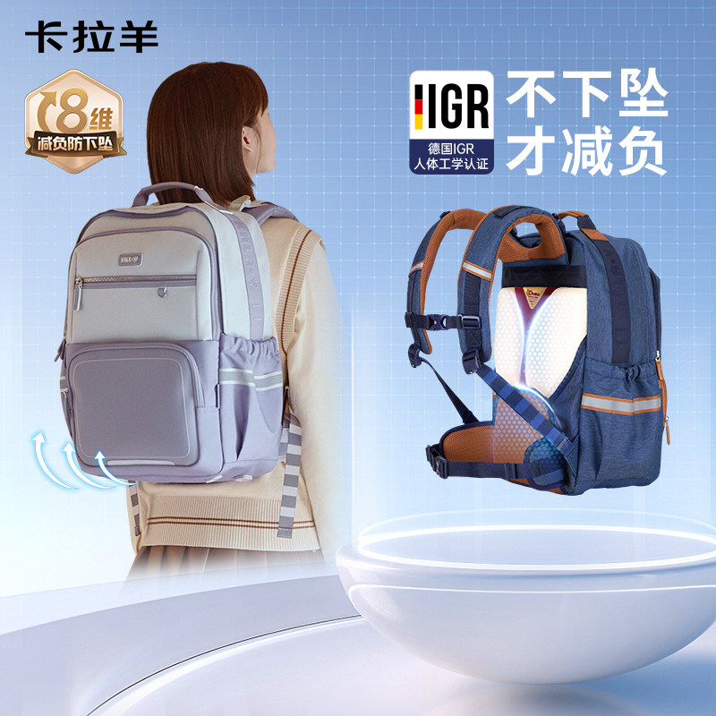 【蒋勤勤代言】卡拉羊26L中学生8维减负防下坠云朵书包CX5136L