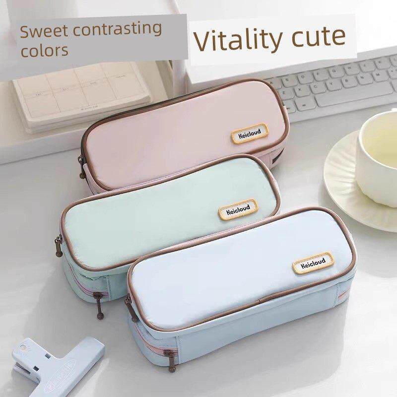 Deli软系列文具盒云亲肤小众防水软储文具盒大容量日式文具盒简约清新的风格女孩文具盒纯色化妆包流行