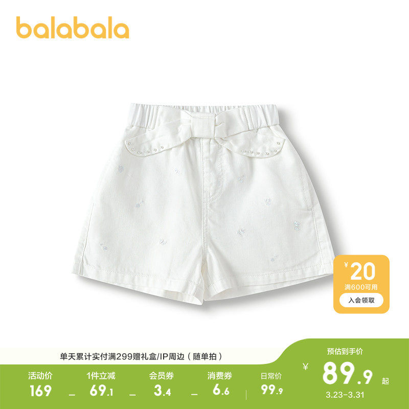 巴拉巴拉童装儿童短裤女童牛仔裤2026夏休闲凉感抗菌透气薄款洋气