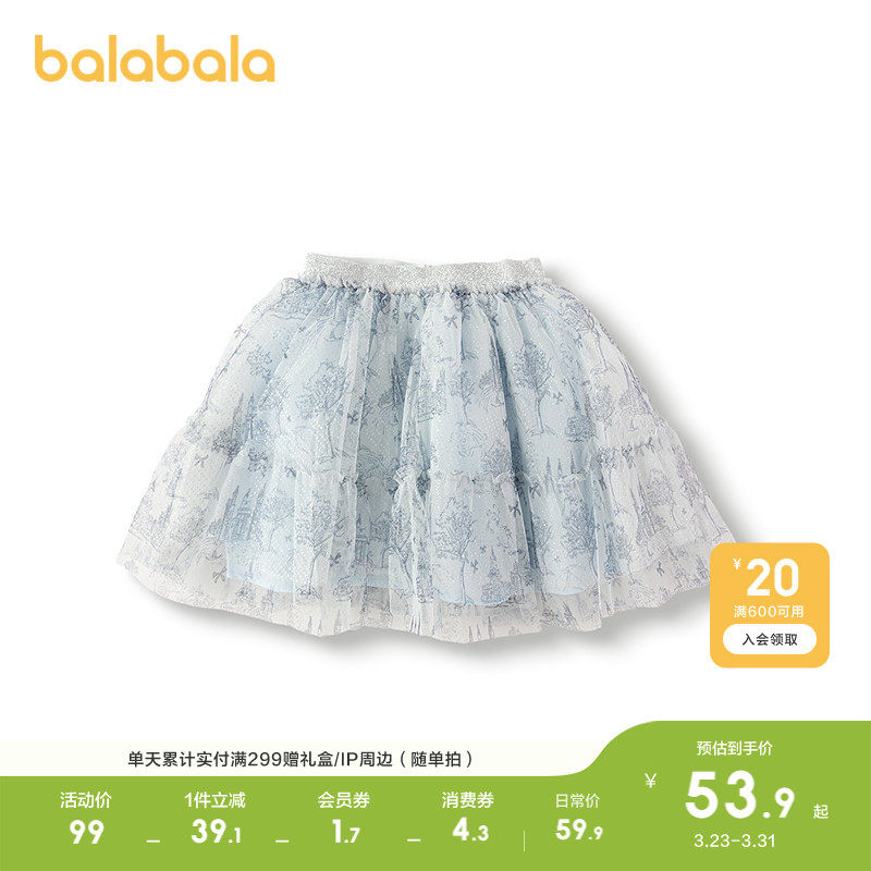 巴拉巴拉童装女童短裙公主印花网纱裙秋季蓬蓬裙甜美洋气儿童裙子