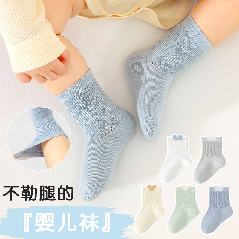 新生婴儿袜子0-3个月春秋季薄款中筒幼儿宝宝a类无骨不勒腿棉袜子
