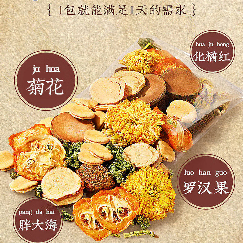 胖大海罗汉果咽润炎茶肺痰化咳止橘红菊花金桔薄荷养生茶官方正品