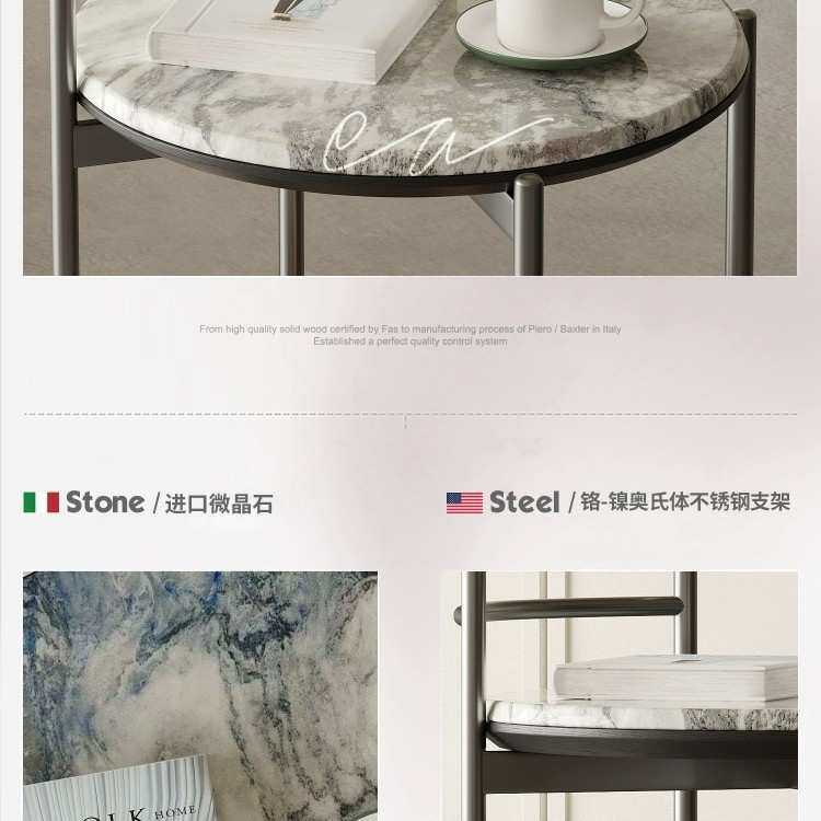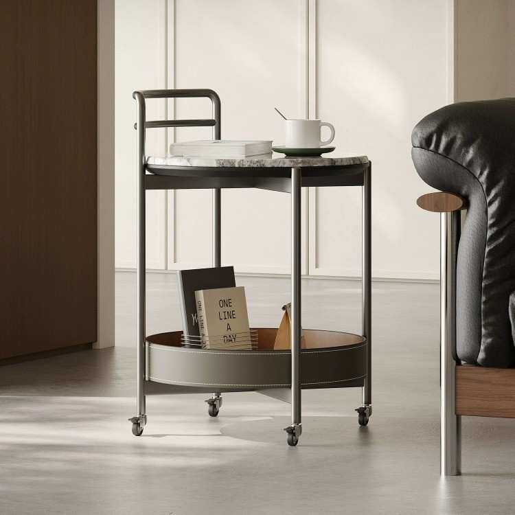 高端微晶石边几创意马鞍皮沙发角几小推车边桌可移动客厅家用茶几