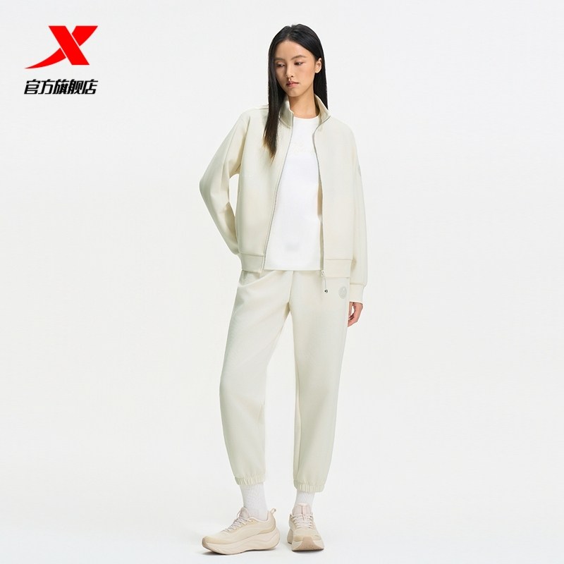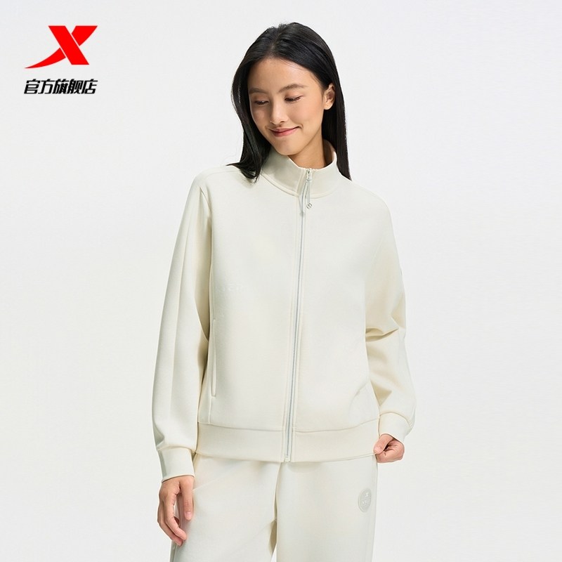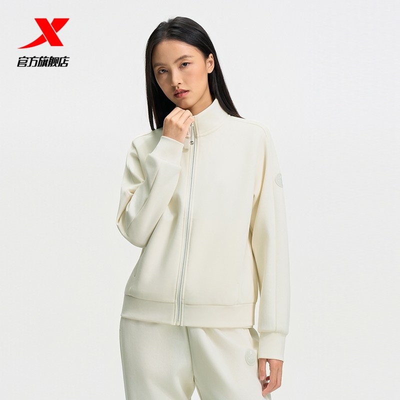 特步外套女秋冬新款弹力宽松女装训练针织上衣瑜伽服975328060038