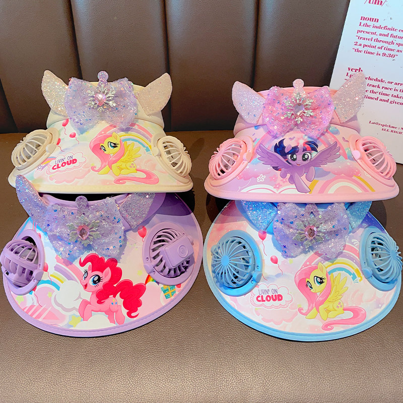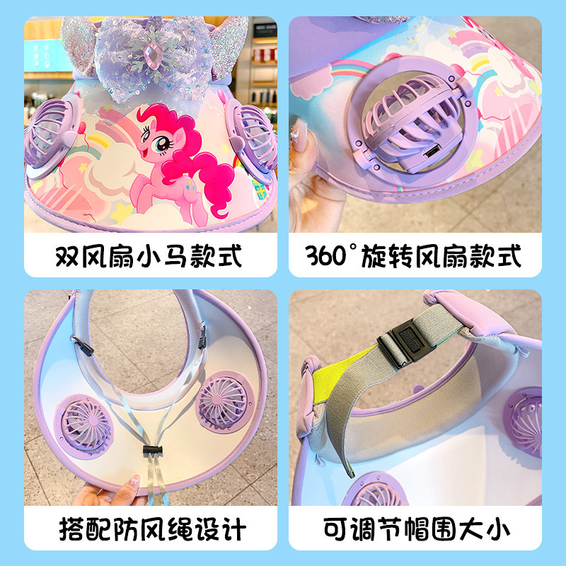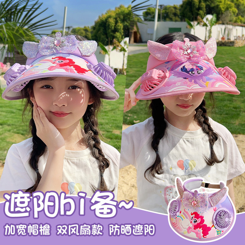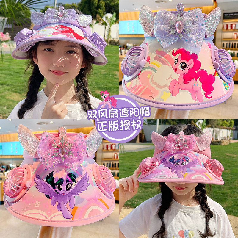 小马宝莉双风扇太阳帽儿童夏季防紫外线帽子户外遮阳大帽檐空顶帽