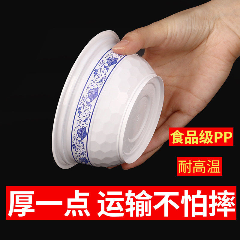 青花瓷一次性外卖打包碗塑料流水席饭碗专用家用食品级餐盒耐高温