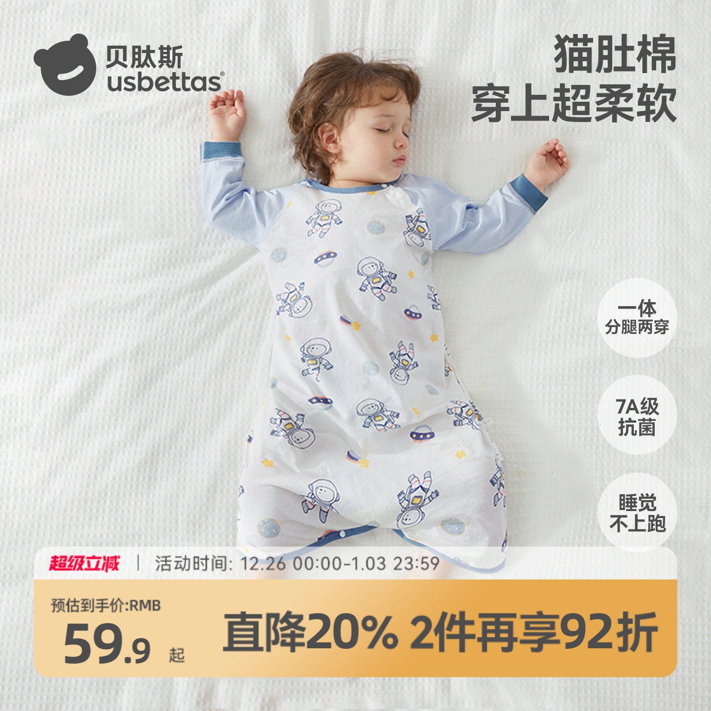 贝肽斯婴儿护肚睡衣儿童家居服连体衣春秋款宝宝睡袋睡裙抗菌新款