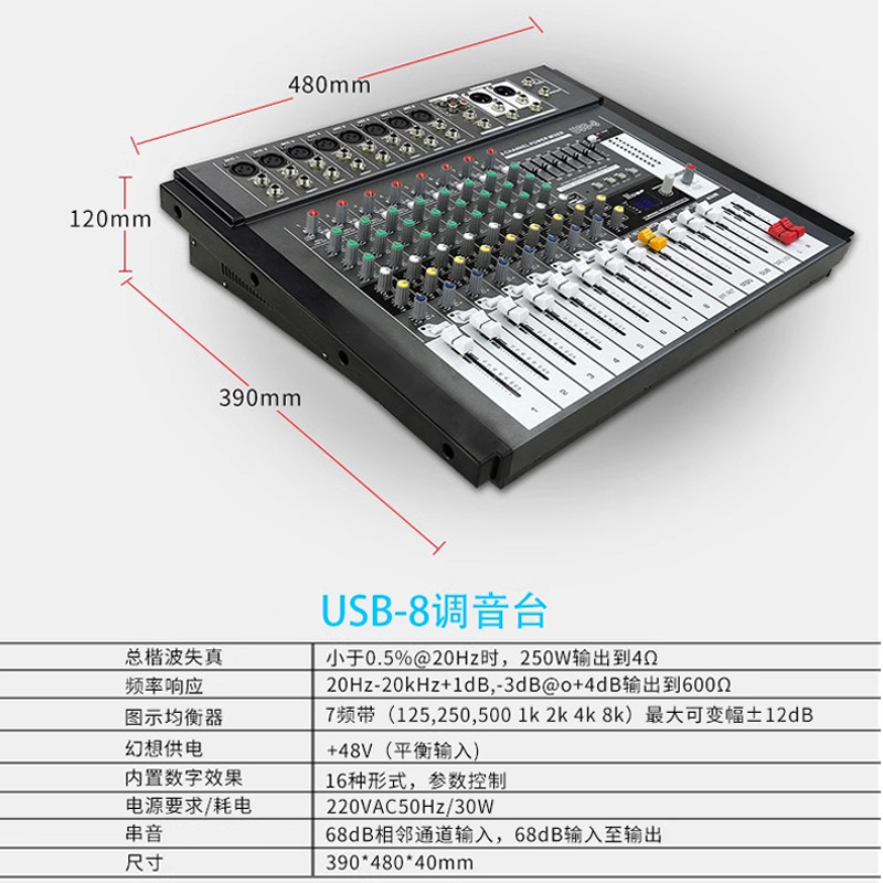 CABO/加宝 USB-8 调音台 8路 舞台专用带USB 内置效果