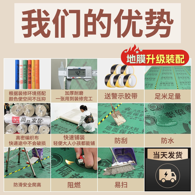 装修地面保护膜瓷砖地砖地膜加厚保护铺地家装地板贴革防尘防潮膜