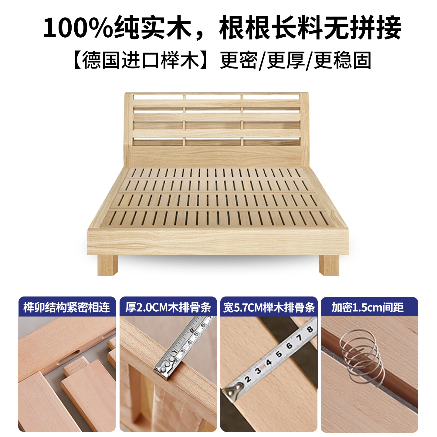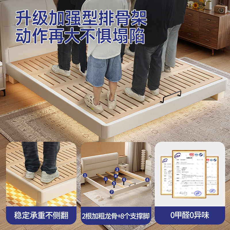 全实木无床头床架榫卯静音悬浮床小户型齐边排骨架床架可定制尺寸