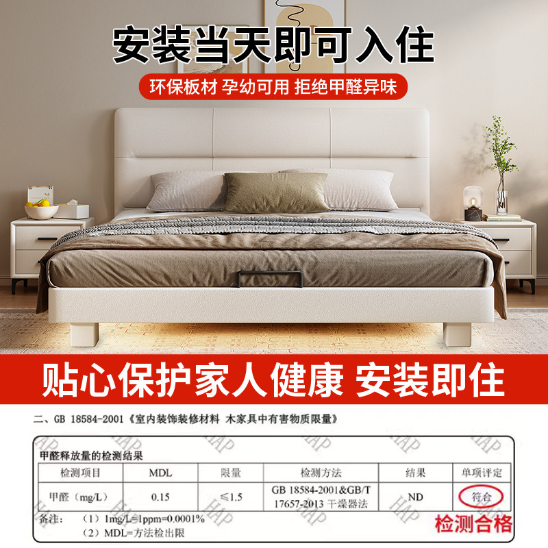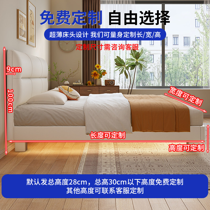 政府补贴薄床头纯实木榉木高档齐边床小户型静音双人床可定制尺寸