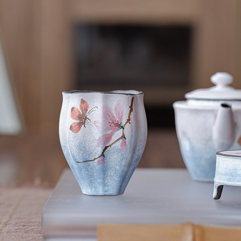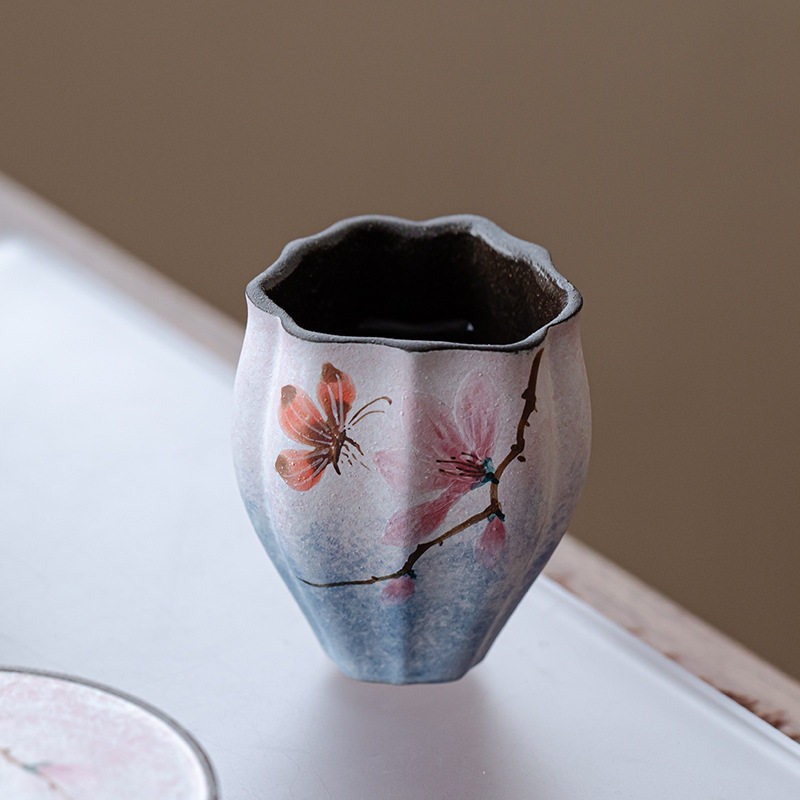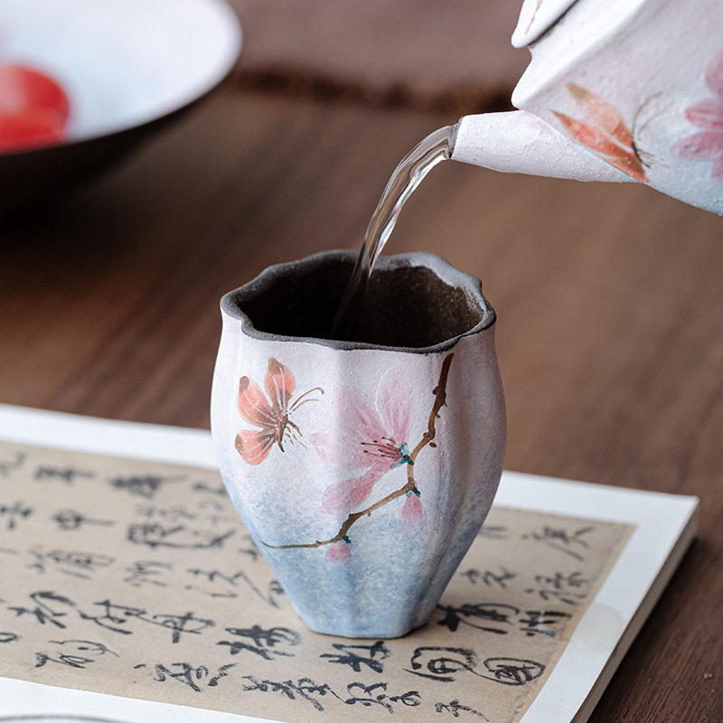 粉引手绘茶杯陶瓷主人杯女士喝茶个人专用高档茶盏功夫茶具单口杯