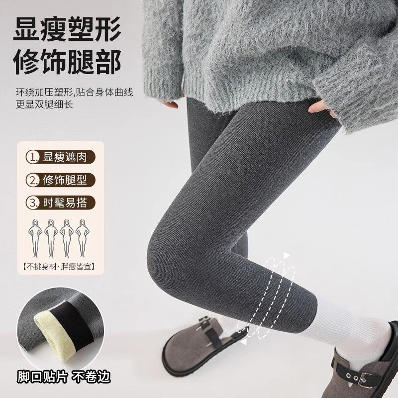 德绒秋裤女士内穿高腰保暖裤大码修身打底衬裤薄款发热棉毛裤冬季