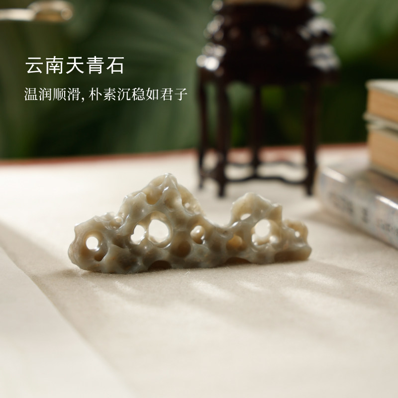 汉墨 天然太湖石玉石笔搁 多功能书法玉石笔架镇纸小玉镇书法国画 初学者毛笔搁笔架山文房玉器