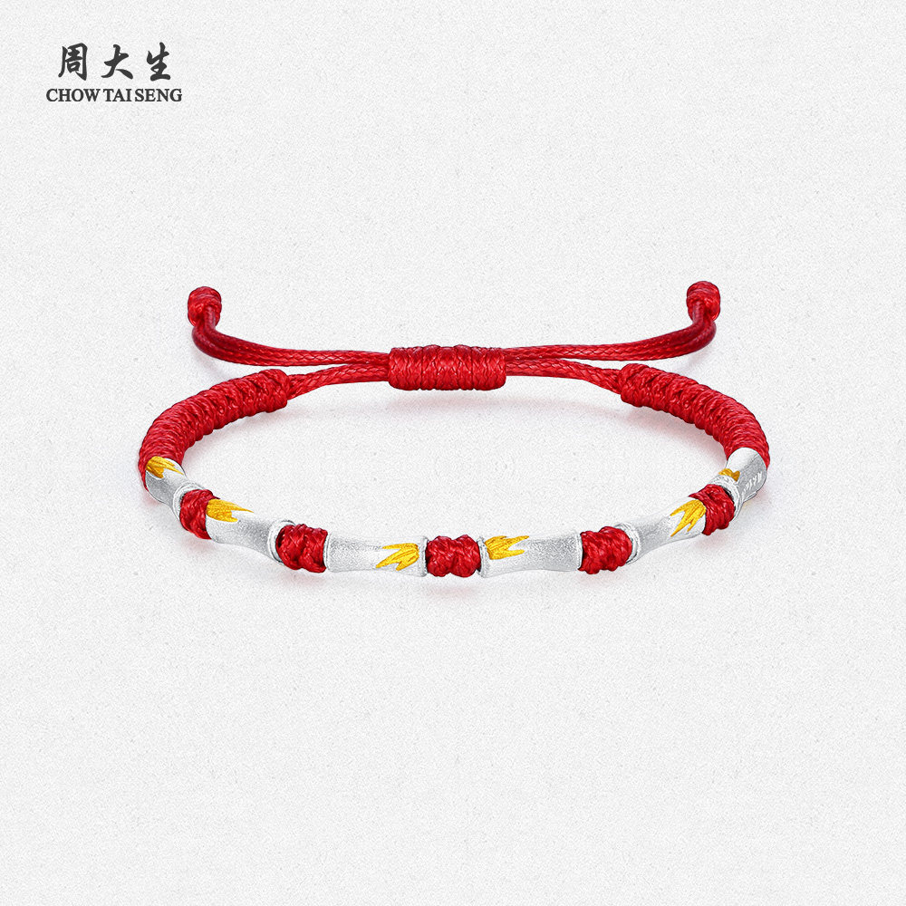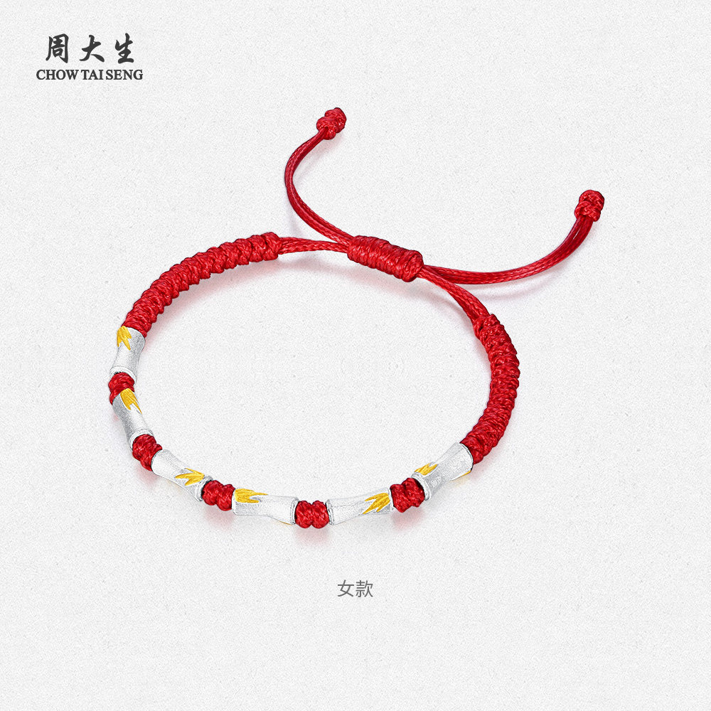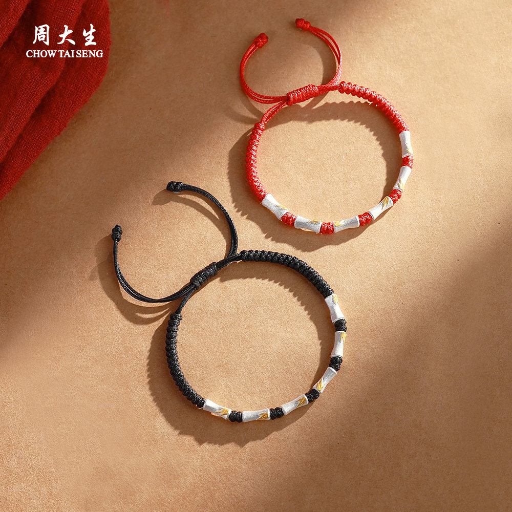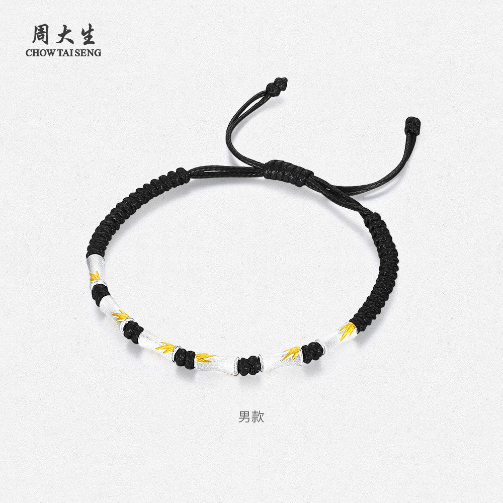 周大生有你竹矣情侣手绳足银S990竹节手链女款高级生日礼物送女友