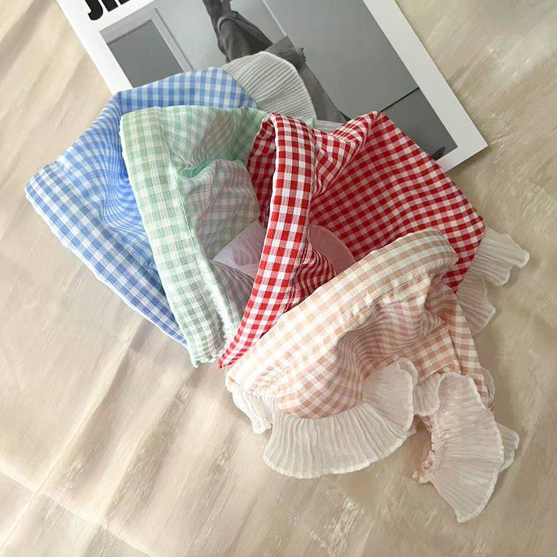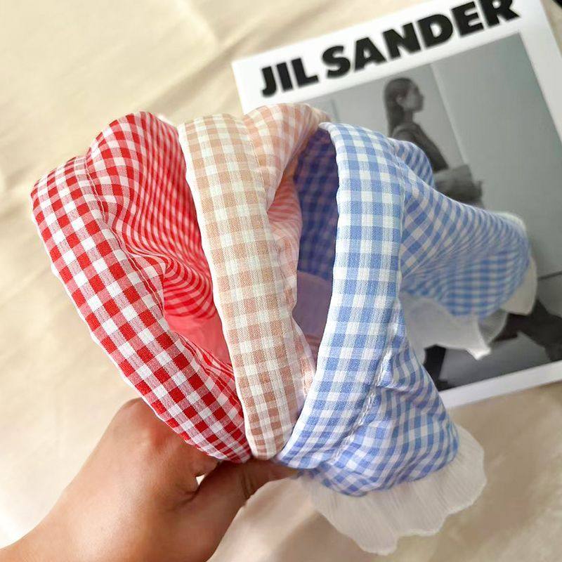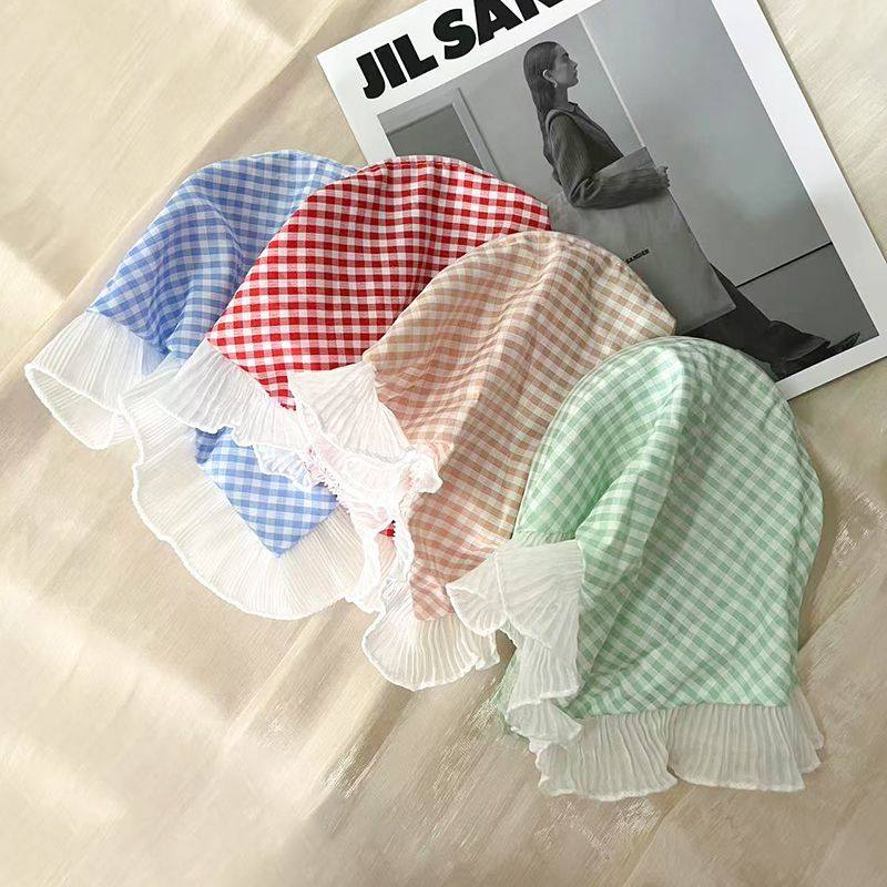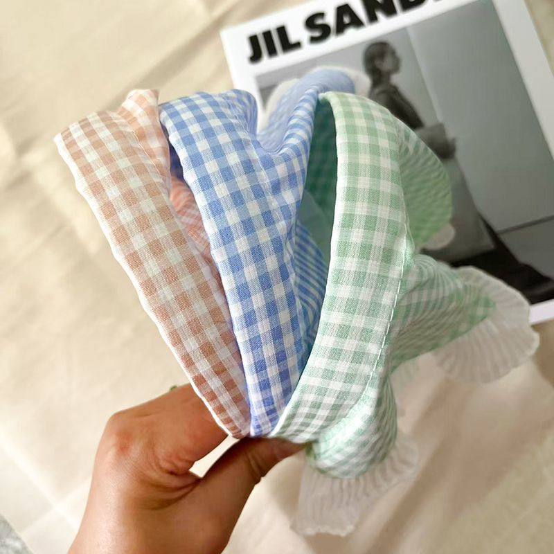 田园风三角头巾女复古蓝色2025新款丝巾包头夏季头饰海边格子发带