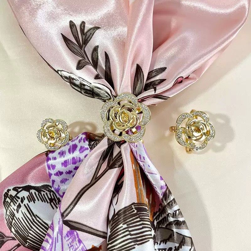 高档丝巾扣优雅玫瑰花小方巾扣多功能大衣腰带固定扣系蝴蝶结神器