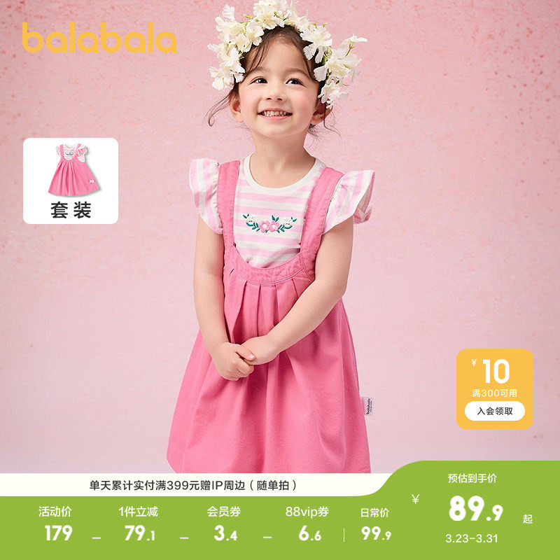 巴拉巴拉童装儿童短袖套装女童背带裙两件套夏装甜美刺绣纯棉柔软
