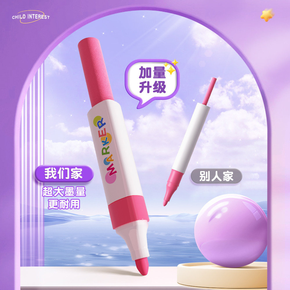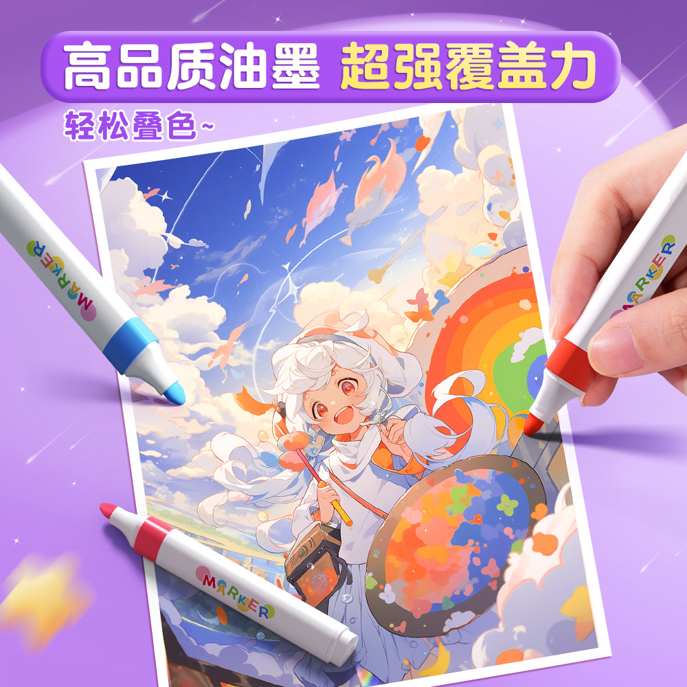 丙烯马克笔儿童不透色可叠色小学生美术专用笔芯水彩笔比心24/36/48彩色画笔无毒可水洗炳稀碧玺绘画水性油性