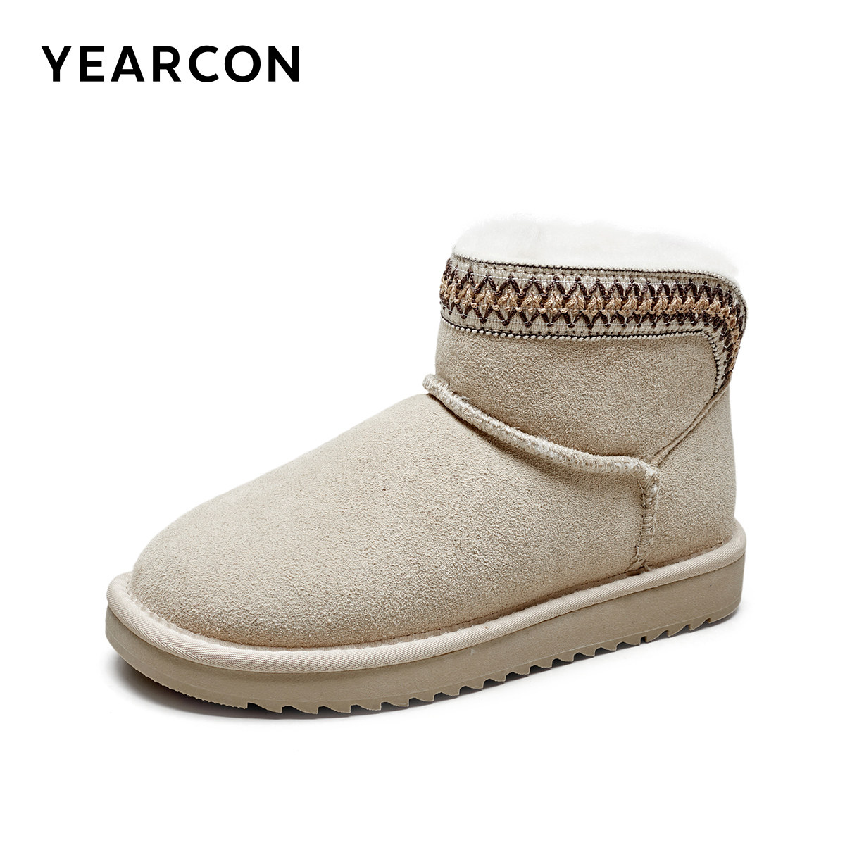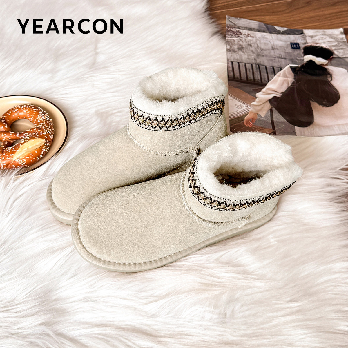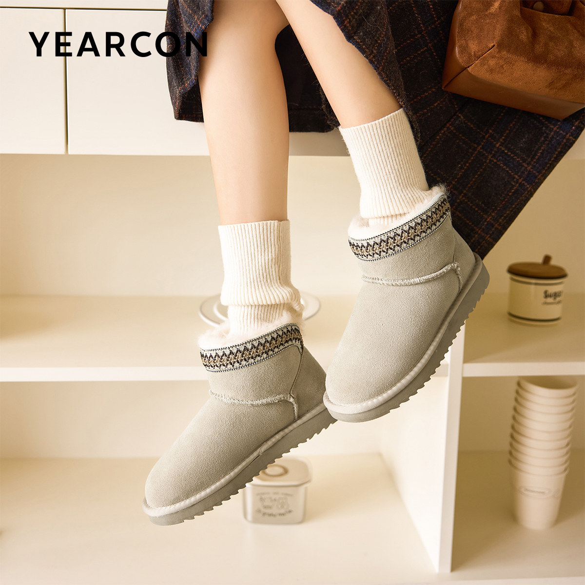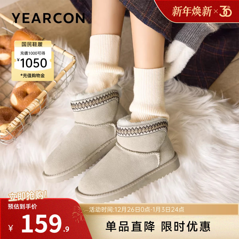 意尔康女鞋2025冬季新款加绒保暖棉鞋平底短筒雪地靴户外休闲短靴