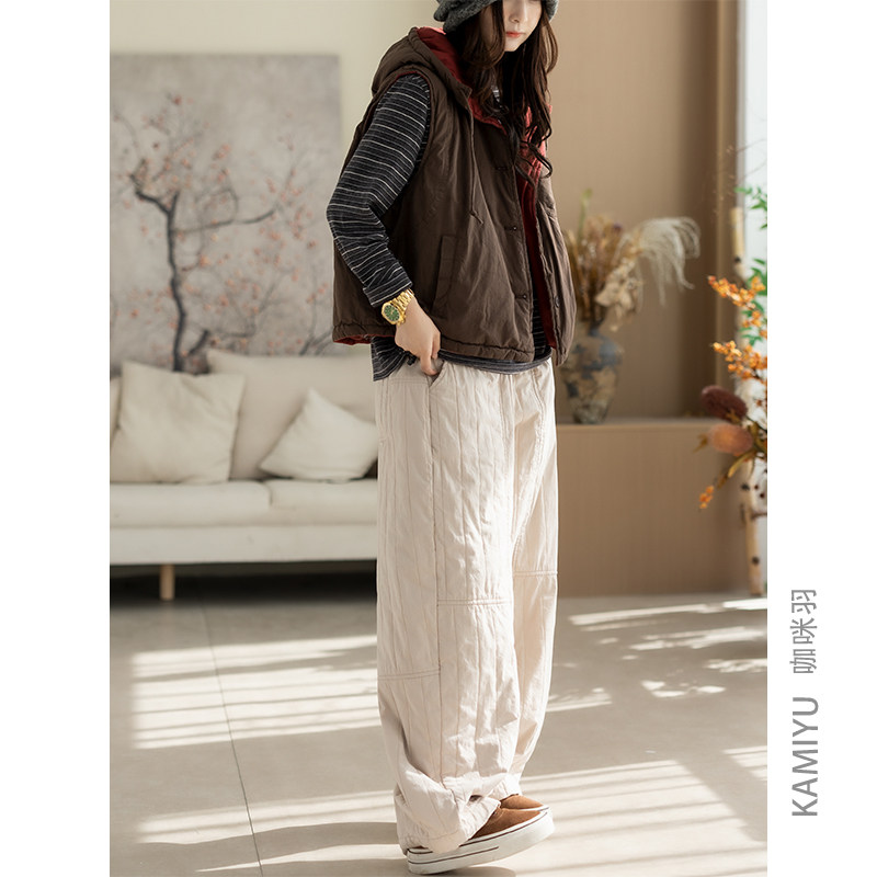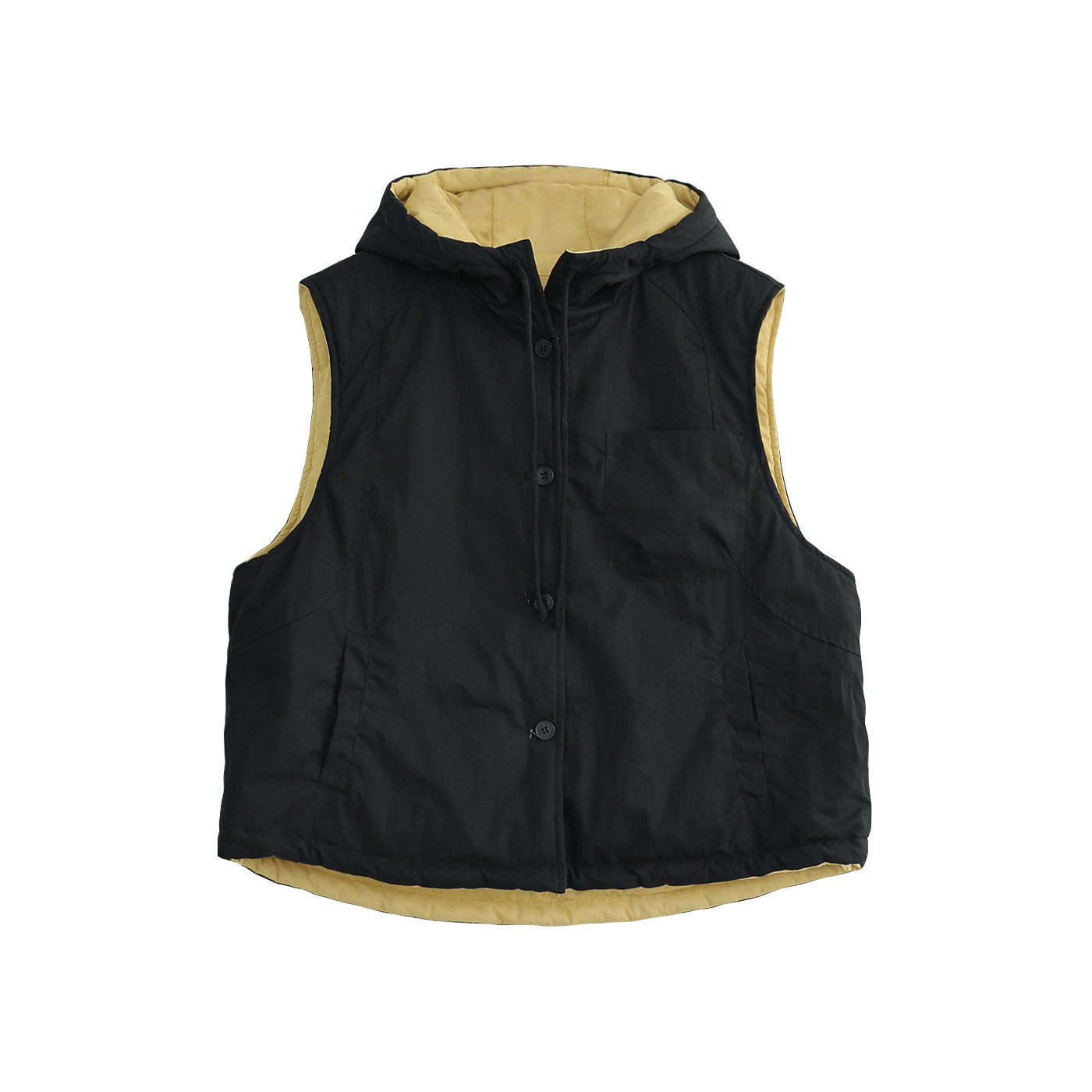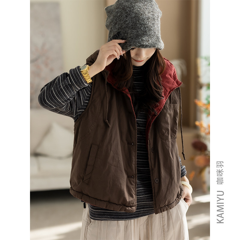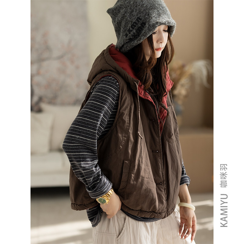 咖咪羽全棉马甲女秋冬新款文艺休闲连帽女士百搭通勤坎肩女装马夹