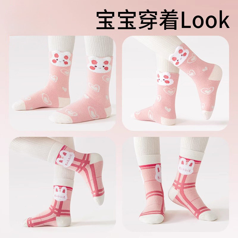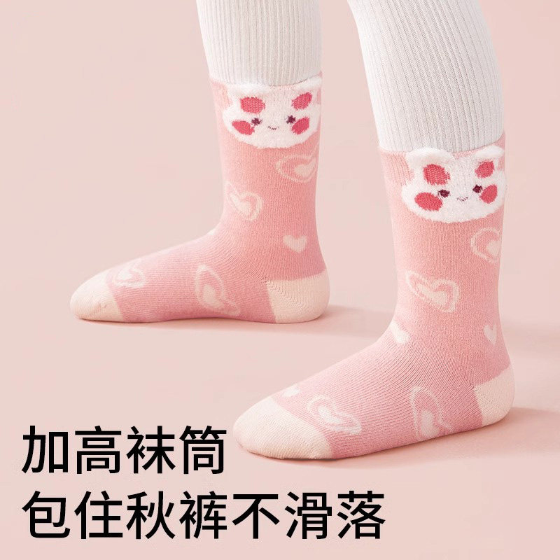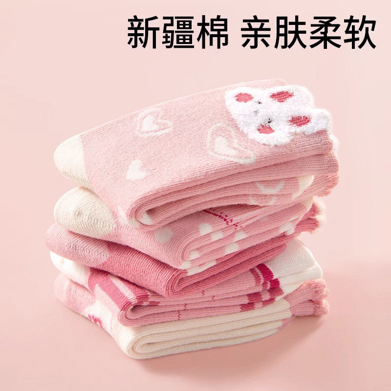 儿童袜子棉袜秋冬中筒袜女童秋季宝宝粉色甜美棉袜女宝2024秋新品