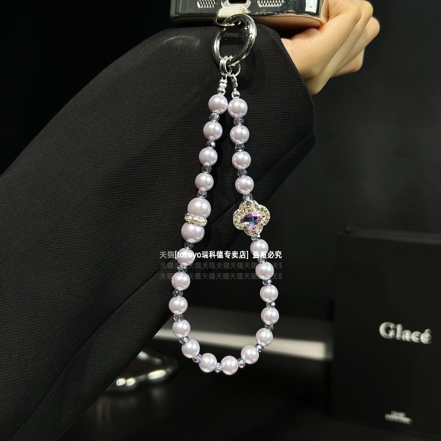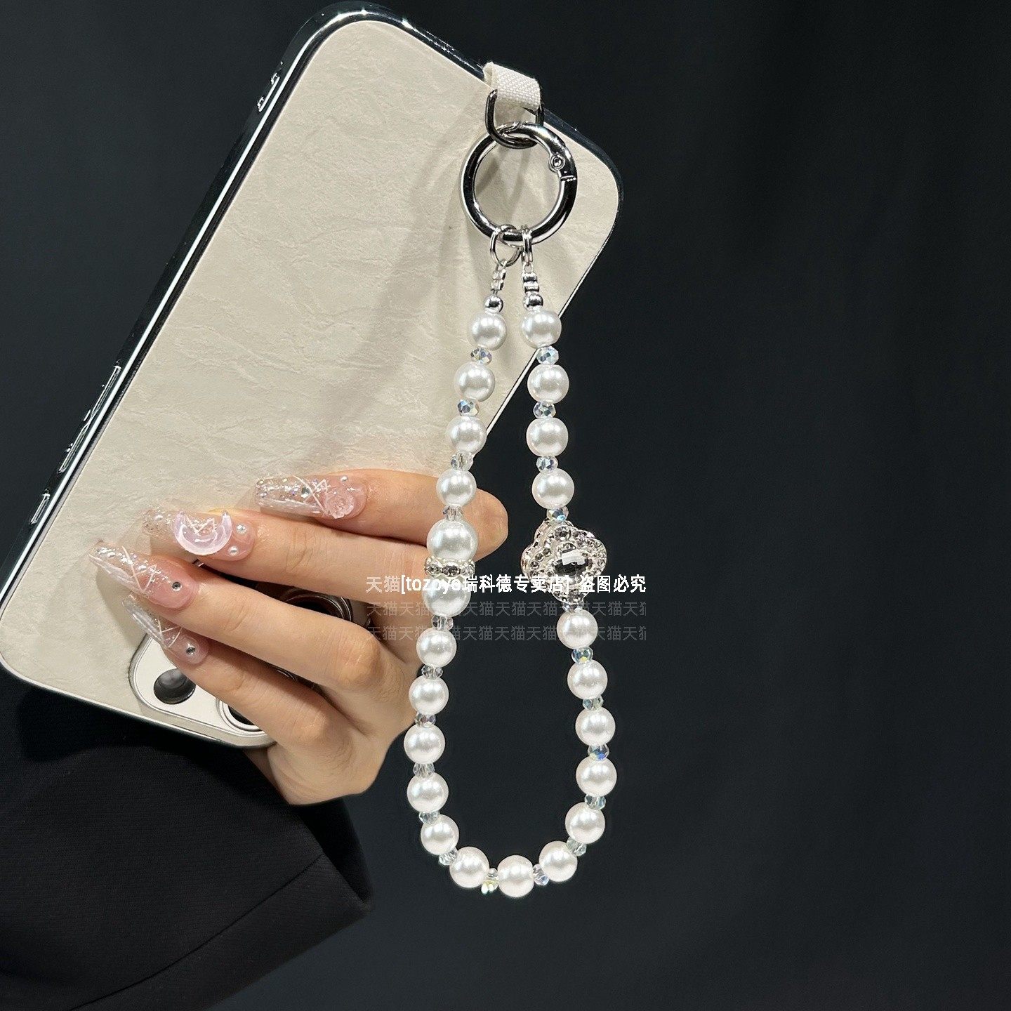 新款珍珠手机链超精致四叶草闪钻手腕式挂链高级感串珠链条短款手提腕带手链奢华小众高端包包钥匙挂饰挂件壳