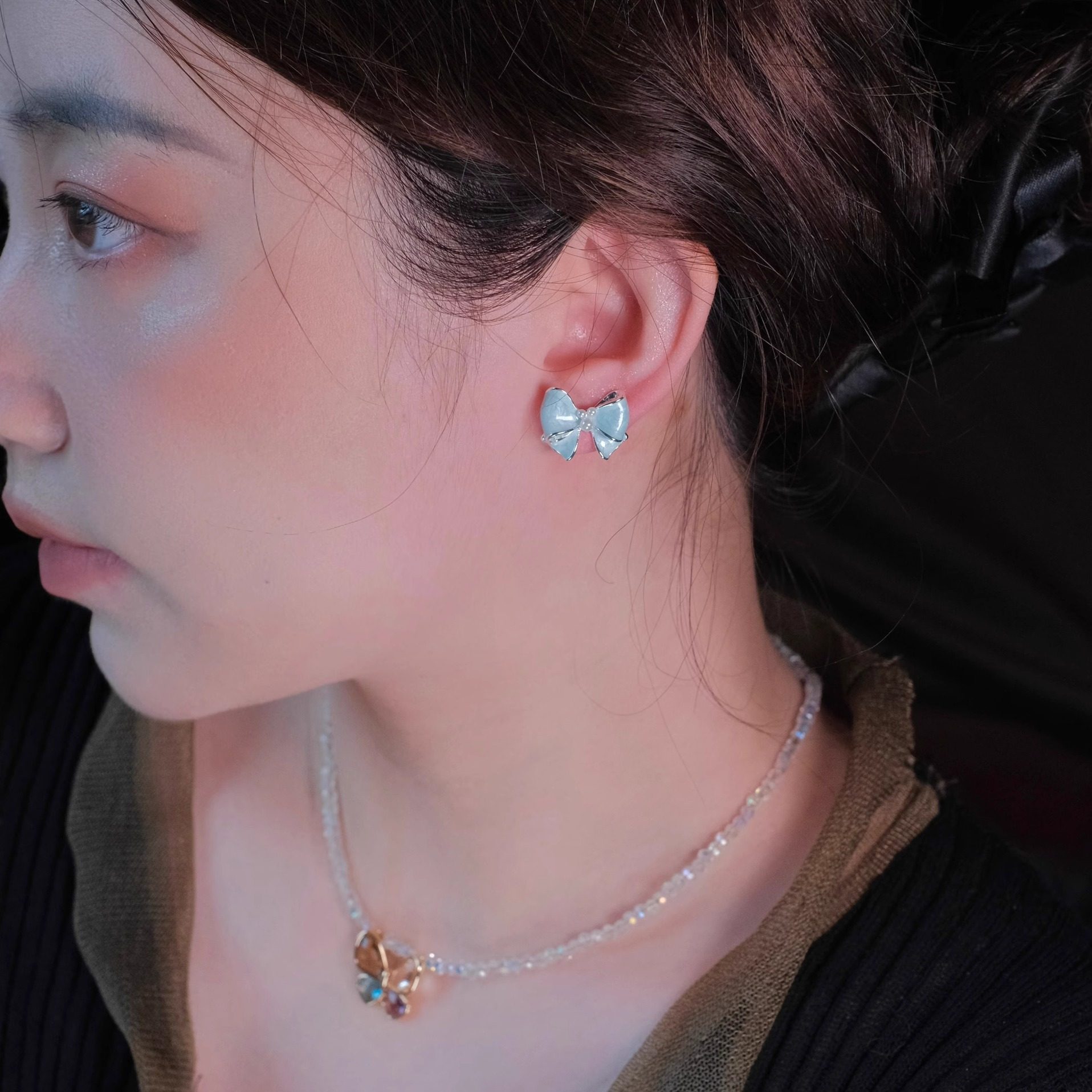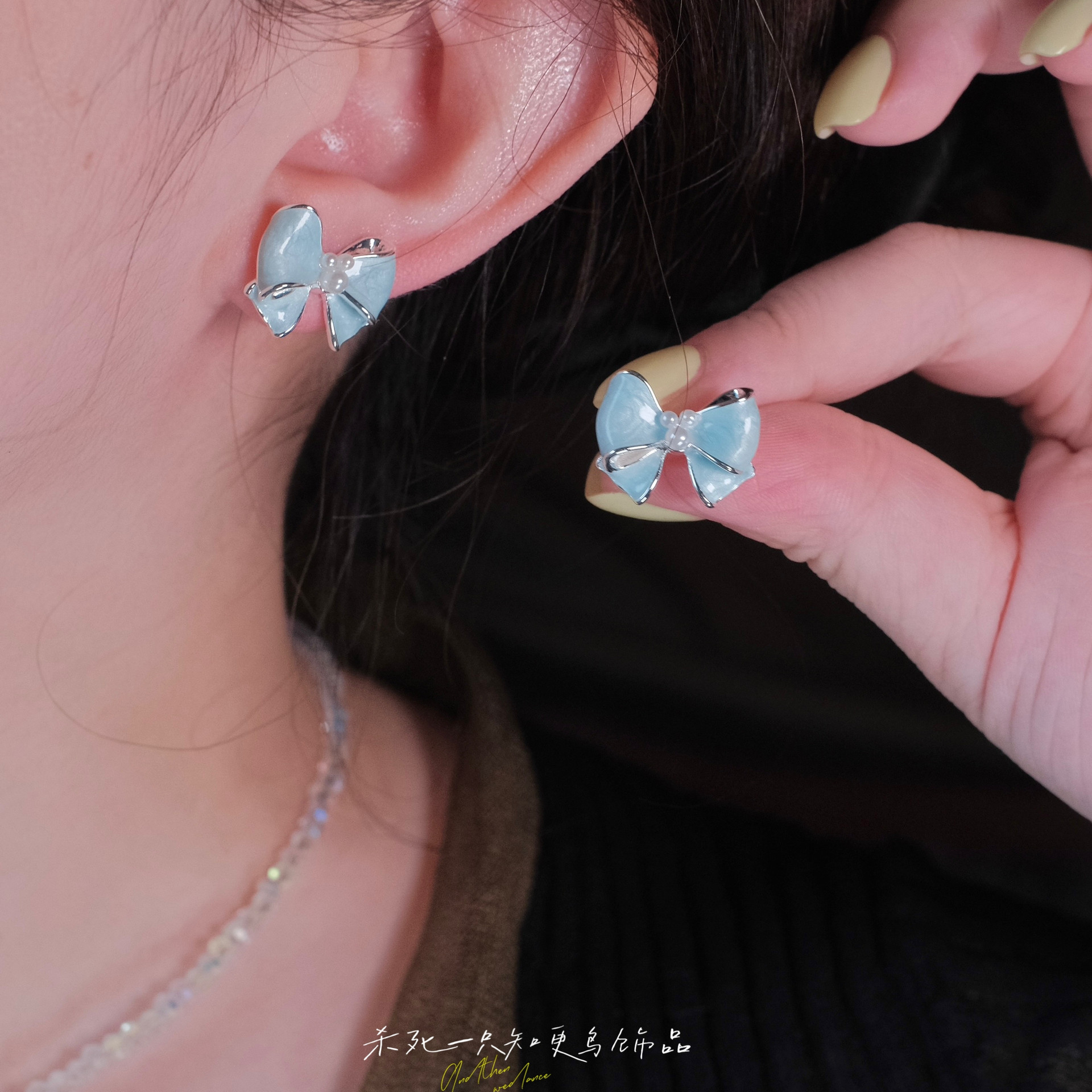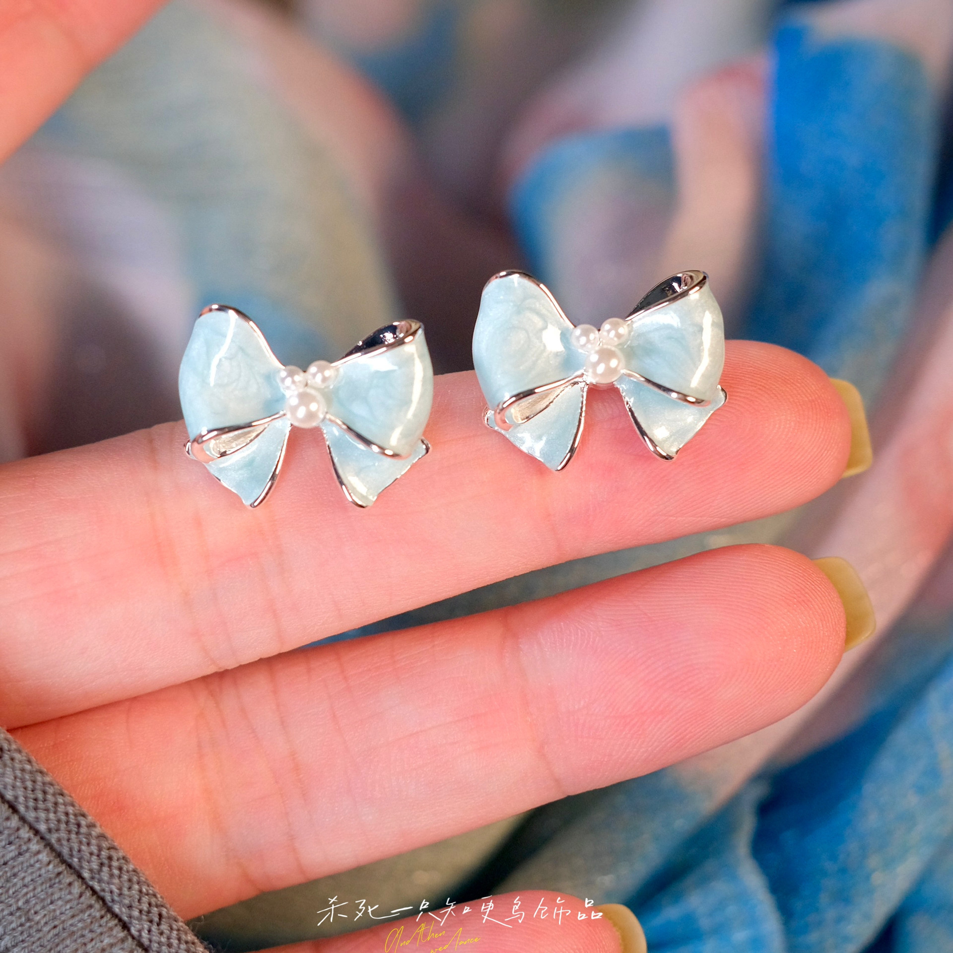 《海盐蝴蝶结》夏天少女心清新蓝色珐琅滴釉甜美超仙耳环耳饰耳夹