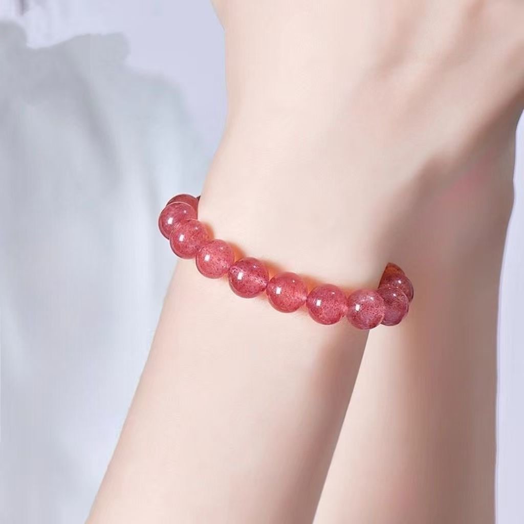 纯天然草莓晶手链招桃花转运马粉水晶手串女款高档清奢礼物送礼