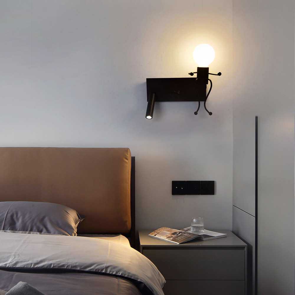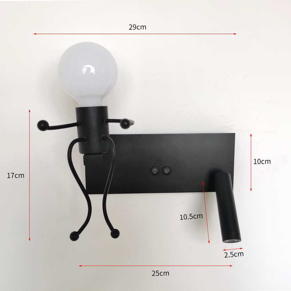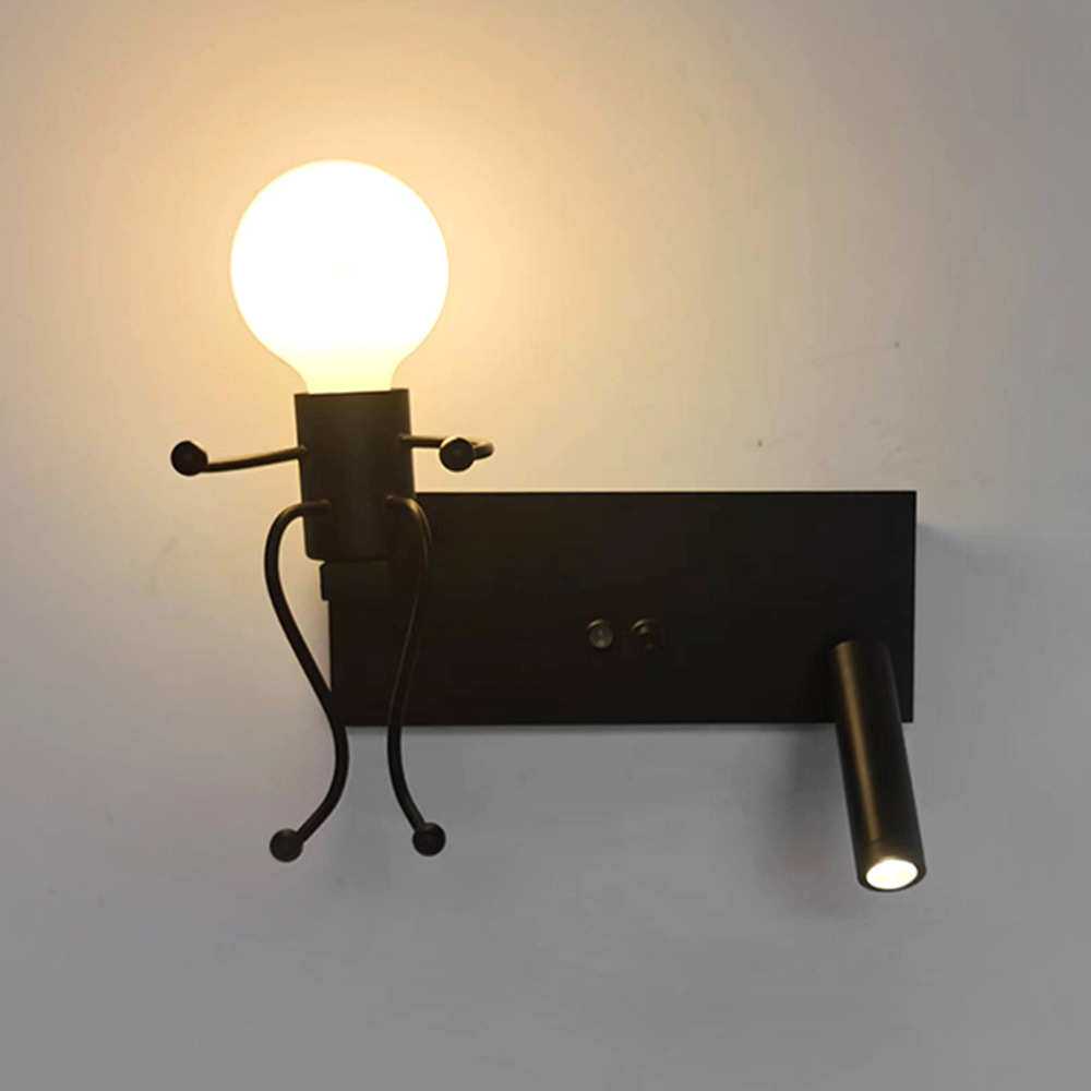 跨境货源儿童创意壁灯工业复古铁艺小人壁灯酒店卧室床头阅读射灯
