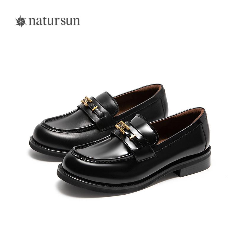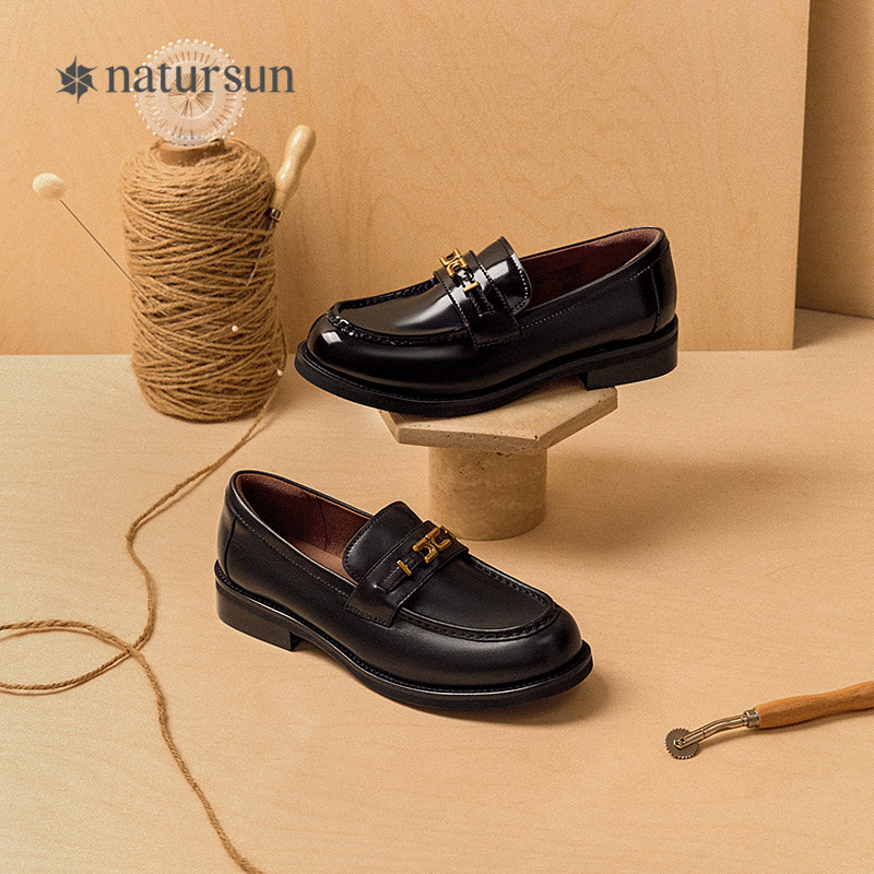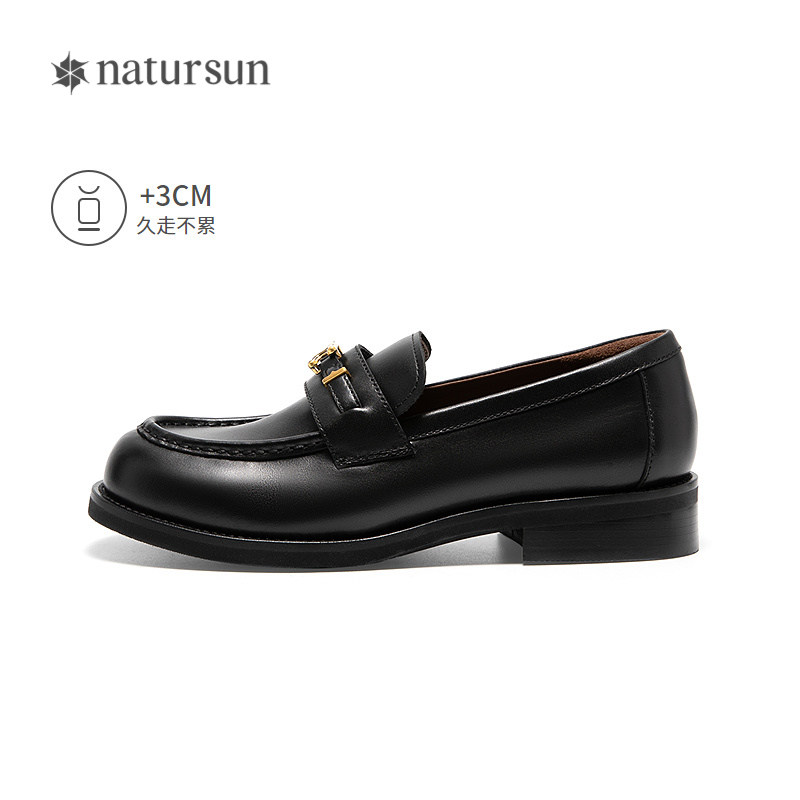 natursun经典乐福鞋女冬季英伦风一脚蹬圆头舒适百搭中跟休闲女鞋