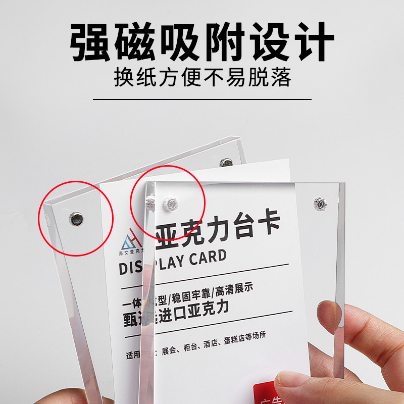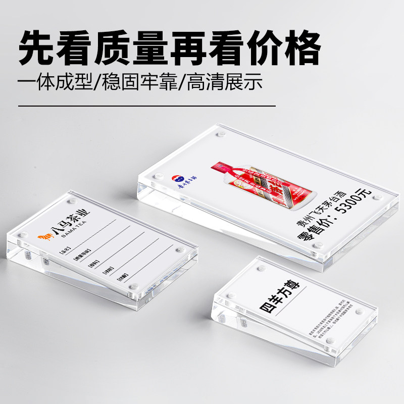 亚克力斜面磁吸台卡价格牌展会桌面产品参数介绍标价牌广告展示牌