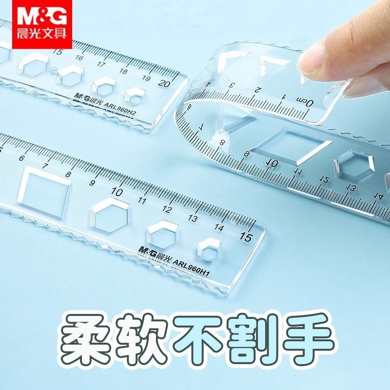 晨光文具软尺子透明多规格软尺直尺波浪尺绘画制图工具可弯曲套尺学生用考试多功能创意绘图尺刻度尺学习用品