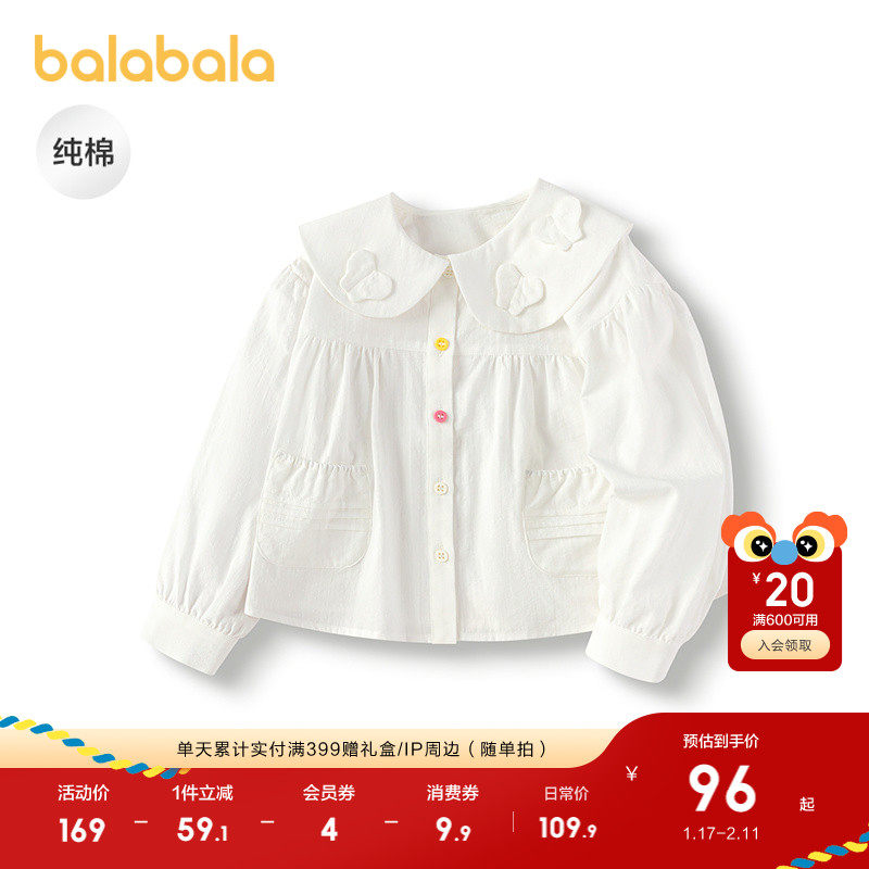 巴拉巴拉童装宝宝长袖衬衫纯棉白衬衣女童2025秋新款上衣时尚潮酷