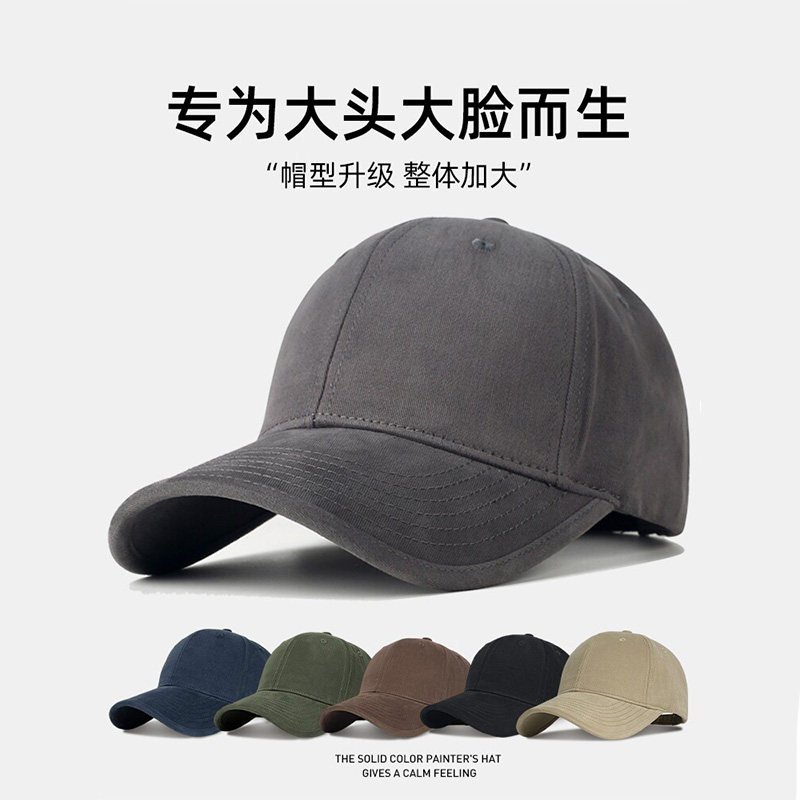 美式复古字母灰色棒球帽女高级感宽檐大头围显脸小百搭鸭舌帽子男