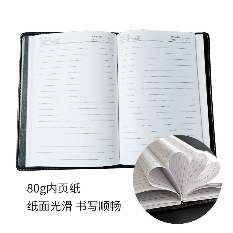 笔记本加厚仿皮面商务记事本加厚办公会议B5笔记本黑皮日记本子