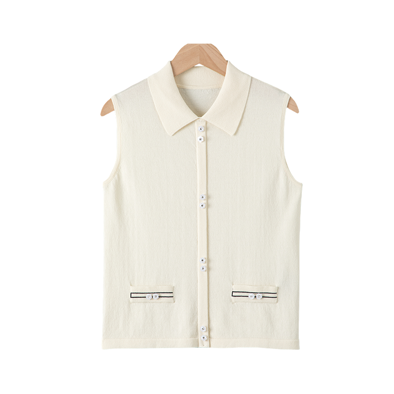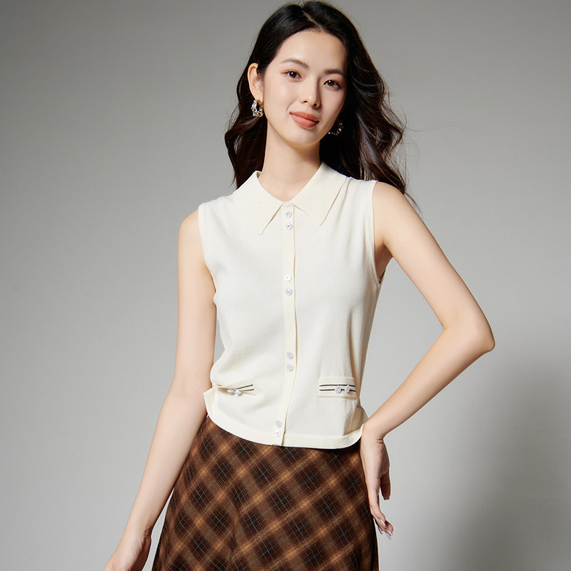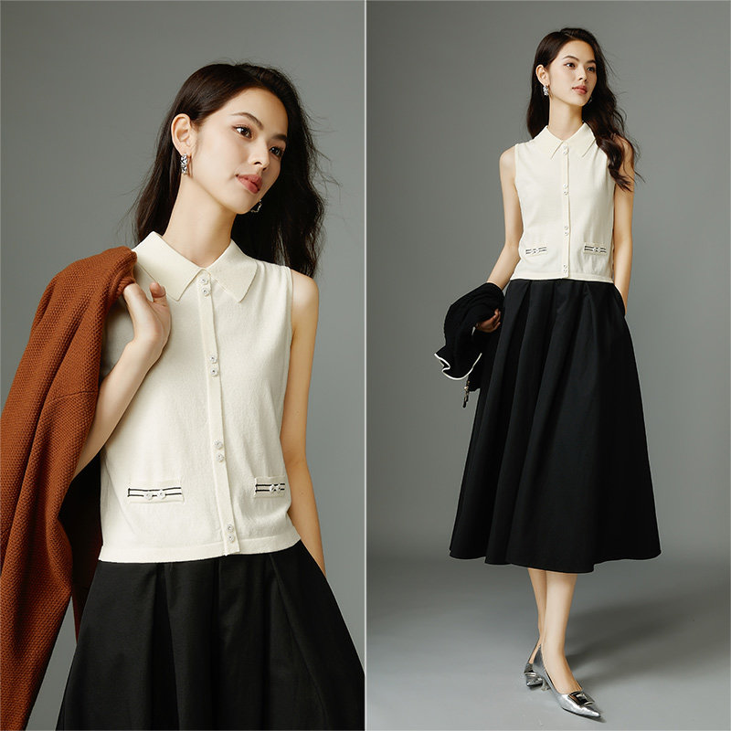 晚白2025秋冬新款气质弹力上衣无袖针织翻领背心女打底内搭外穿女